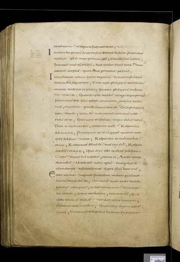 | Keywords: MCC-61050 Evangeliarium (Lebuïnuscodex) (228).jpg Artwork nl Anonymous Noordoost-Frankrijk Anonymous Rijnland Anonymous Maasland nl De kern van de boekband van de Lebuïnuscodex wordt gevormd door twee eikenhouten platten De rug en het achterplat zijn overtrokken met zeemleer Het voorplat is rijkelijk versierd met verguld zilversmeedwerk reliëfs van walrustand en verscheidene stenen De compositie van de bekleding van het voorplat wordt bepaald door een verguld zilveren filigraankruis Aan de uiteinden van de kruisarmen bevinden zich vierpassen met overhoeks vierkant eveneens met filigraan gedecoreerd Hiervan zijn er slechts twee bewaard gebleven en wel die aan de verticale kruisarmen Zij bevatten tevens nog de oorspronkelijke versiering bestaande uit een filigraanmedaillon met een pseudo-camee van respectievelijk een mannen- en een vrouwenhoofd in profiel Het snijpunt van het kruis wordt ingenomen door een ver vooruitstekend Bacchuskopje in chalcedoon te herkennen aan de kleine druiventrosjes in zijn haartooi Het kopje is gevat in een filigraanmedaillon welke op zijn beurt weer is geplaatst op een vierpas van filigraanwerk Op elk van de kruisarmen bevindt zich een ovale steen 'en cabochon' op een medaillon met filigraan Het filigraanwerk van kruis en sierstukken is in de vorm van visblazen In de ruimten tussen de kruisarmen zijn rechthoekige reliëfs van walrustand aangebracht met de vier evangelisten en hun symbool De reliëfs hebben de volgende afmetingen H 10 0 x B 5 5 cm Van links boven naar rechts onder betreft het Mattheus met de engel Johannes met de adelaar Marcus met de gevleugelde leeuw en Lucas met de gevleugelde os De figuren zijn paarsgewijs als elkaars spiegelbeeld ten opzichte van de middenas geplaatst Mattheus en Johannes zitten vrijwel geheel frontaal terwijl Marcus en Lucas meer in profiel zijn afgebeeld Qua opbouw verschillen de vier reliëfs nauwelijks van elkaar Binnen een rand van vierlobbige blaadjes verheffen zich twee zuilen met een basis een kapiteel en een dekplaat Hierop rust een rondboog geflankeerd door twee torens en afgedekt met een fronton dat boven Mattheus en Johannes boogvormig en boven Marcus en Lucas driehoekig is Onder deze overhuiving zitten de evangelisten gekleed in een lang gewaad en mantel met gekruiste benen aan een lessenaar hun blote voeten rustend op een bankje Allen zijn baardeloos en voorzien van een nimbus Voorts houden ze een pen in hun rechterhand terwijl hun linker op een boek ligt of gebarend is opgeheven Boven elk van de evangelisten verschijnt in de opening van het fronton zijn symbool met een spreukband Dit rijkelijk gedecoreerde middenveld wordt omlijst door sierbanden van verguld koper De opbouw van de sierlijsten is steeds dezelfde een opstaande smalle band die op regelmatige afstanden is voorzien van holten met aan weerszijden een brede strook voorzien van een gestanst motief Aan de lange zijden van de boekband bestaat het motief uit palmetten aan de korte zijden uit rozetten Van deze laatstgenoemde stroken ontbreekt steeds de buitenste rand Bij alle stroken met palmettenmotief wijzen de palmetten naar links met uitzondering van de buitenste strook rechtsboven die het motief in tegengestelde richting toont Verguld zilveren rozetten op de hoeken van het voorplat omgeven door een smalle rand van filigraanwerk met cirkelmotief en bekroond met een 'en cabochon' gezette steen completeren het geheel Van de rozet links onder ontbreekt de steen en is slechts de buitenste rand over Aan de voorzijde van de boekband bevinden zich nog de rudimenten van twee sluitingen between u'825' u'1000' u'1150' u'850' u'1199' u'1199' nl perkament eikenhout zilver goud koper walrustand chalcedoon glas leer Size 35 5 26 0 cm nl Hoogte 35 5cm Breedte 26 0cm Diepte 13 5cm Institution Museum Catharijneconvent object history exhibition history credit line nl Foto Museum Catharijneconvent Utrecht foto HetFotoAtelier Peter Rothengatter accession number Object number 61050 Inventory number ABM h1 place of creation https //www catharijneconvent nl/adlib/61050/ View this work on the website of Museum Catharijneconvent Museum Catharijneconvent Cc-zero <gallery> File MCC-61050_Evangeliarium_Lebuïnuscodex_ 11 jpg File MCC-61050_Evangeliarium_Lebuïnuscodex_ 172 jpg File MCC-61050_Evangeliarium_Lebuïnuscodex_ 212 jpg File MCC-61050_Evangeliarium_Lebuïnuscodex_ 61 jpg File MCC-61050_Evangeliarium_Lebuïnuscodex_ 12 jpg File MCC-61050_Evangeliarium_Lebuïnuscodex_ 213 jpg File MCC-61050_Evangeliarium_Lebuïnuscodex_ 56 jpg File MCC-61050_Evangeliarium_Lebuïnuscodex_ 232 jpg File MCC-61050_Evangeliarium_Lebuïnuscodex_ 93 jpg File MCC-61050_Evangeliarium_Lebuïnuscodex_ 99 jpg File MCC-61050_Evangeliarium_Lebuïnuscodex_ 184 jpg File MCC-61050_Evangeliarium_Lebuïnuscodex_ 64 jpg File MCC-61050_Evangeliarium_Lebuïnuscodex_ 299 jpg File MCC-61050_Evangeliarium_Lebuïnuscodex_ 86 jpg File MCC-61050_Evangeliarium_Lebuïnuscodex_ 260 jpg File MCC-61050_Evangeliarium_Lebuïnuscodex_ 159 jpg File MCC-61050_Evangeliarium_Lebuïnuscodex_ 247 jpg File MCC-61050_Evangeliarium_Lebuïnuscodex_ 180 jpg File MCC-61050_Evangeliarium_Lebuïnuscodex_ 121 jpg File MCC-61050_Evangeliarium_Lebuïnuscodex_ 315 jpg File MCC-61050_Evangeliarium_Lebuïnuscodex_ 284 jpg File MCC-61050_Evangeliarium_Lebuïnuscodex_ 33 jpg File MCC-61050_Evangeliarium_Lebuïnuscodex_ 44 jpg File MCC-61050_Evangeliarium_Lebuïnuscodex_ 258 jpg File MCC-61050_Evangeliarium_Lebuïnuscodex_ 237 jpg File MCC-61050_Evangeliarium_Lebuïnuscodex_ 20 jpg File MCC-61050_Evangeliarium_Lebuïnuscodex_ 220 jpg File MCC-61050_Evangeliarium_Lebuïnuscodex_ 279 jpg File MCC-61050_Evangeliarium_Lebuïnuscodex_ 183 jpg File MCC-61050_Evangeliarium_Lebuïnuscodex_ 60 jpg File MCC-61050_Evangeliarium_Lebuïnuscodex_ 166 jpg File MCC-61050_Evangeliarium_Lebuïnuscodex_ 97 jpg File MCC-61050_Evangeliarium_Lebuïnuscodex_ 71 jpg File MCC-61050_Evangeliarium_Lebuïnuscodex_ 132 jpg File MCC-61050_Evangeliarium_Lebuïn