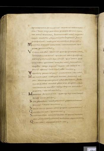 | Keywords: MCC-61050 Evangeliarium (Lebuïnuscodex) (268).jpg Artwork nl Anonymous Noordoost-Frankrijk Anonymous Rijnland Anonymous Maasland nl De kern van de boekband van de Lebuïnuscodex wordt gevormd door twee eikenhouten platten De rug en het achterplat zijn overtrokken met zeemleer Het voorplat is rijkelijk versierd met verguld zilversmeedwerk reliëfs van walrustand en verscheidene stenen De compositie van de bekleding van het voorplat wordt bepaald door een verguld zilveren filigraankruis Aan de uiteinden van de kruisarmen bevinden zich vierpassen met overhoeks vierkant eveneens met filigraan gedecoreerd Hiervan zijn er slechts twee bewaard gebleven en wel die aan de verticale kruisarmen Zij bevatten tevens nog de oorspronkelijke versiering bestaande uit een filigraanmedaillon met een pseudo-camee van respectievelijk een mannen- en een vrouwenhoofd in profiel Het snijpunt van het kruis wordt ingenomen door een ver vooruitstekend Bacchuskopje in chalcedoon te herkennen aan de kleine druiventrosjes in zijn haartooi Het kopje is gevat in een filigraanmedaillon welke op zijn beurt weer is geplaatst op een vierpas van filigraanwerk Op elk van de kruisarmen bevindt zich een ovale steen 'en cabochon' op een medaillon met filigraan Het filigraanwerk van kruis en sierstukken is in de vorm van visblazen In de ruimten tussen de kruisarmen zijn rechthoekige reliëfs van walrustand aangebracht met de vier evangelisten en hun symbool De reliëfs hebben de volgende afmetingen H 10 0 x B 5 5 cm Van links boven naar rechts onder betreft het Mattheus met de engel Johannes met de adelaar Marcus met de gevleugelde leeuw en Lucas met de gevleugelde os De figuren zijn paarsgewijs als elkaars spiegelbeeld ten opzichte van de middenas geplaatst Mattheus en Johannes zitten vrijwel geheel frontaal terwijl Marcus en Lucas meer in profiel zijn afgebeeld Qua opbouw verschillen de vier reliëfs nauwelijks van elkaar Binnen een rand van vierlobbige blaadjes verheffen zich twee zuilen met een basis een kapiteel en een dekplaat Hierop rust een rondboog geflankeerd door twee torens en afgedekt met een fronton dat boven Mattheus en Johannes boogvormig en boven Marcus en Lucas driehoekig is Onder deze overhuiving zitten de evangelisten gekleed in een lang gewaad en mantel met gekruiste benen aan een lessenaar hun blote voeten rustend op een bankje Allen zijn baardeloos en voorzien van een nimbus Voorts houden ze een pen in hun rechterhand terwijl hun linker op een boek ligt of gebarend is opgeheven Boven elk van de evangelisten verschijnt in de opening van het fronton zijn symbool met een spreukband Dit rijkelijk gedecoreerde middenveld wordt omlijst door sierbanden van verguld koper De opbouw van de sierlijsten is steeds dezelfde een opstaande smalle band die op regelmatige afstanden is voorzien van holten met aan weerszijden een brede strook voorzien van een gestanst motief Aan de lange zijden van de boekband bestaat het motief uit palmetten aan de korte zijden uit rozetten Van deze laatstgenoemde stroken ontbreekt steeds de buitenste rand Bij alle stroken met palmettenmotief wijzen de palmetten naar links met uitzondering van de buitenste strook rechtsboven die het motief in tegengestelde richting toont Verguld zilveren rozetten op de hoeken van het voorplat omgeven door een smalle rand van filigraanwerk met cirkelmotief en bekroond met een 'en cabochon' gezette steen completeren het geheel Van de rozet links onder ontbreekt de steen en is slechts de buitenste rand over Aan de voorzijde van de boekband bevinden zich nog de rudimenten van twee sluitingen between u'825' u'1000' u'1150' u'850' u'1199' u'1199' nl perkament eikenhout zilver goud koper walrustand chalcedoon glas leer Size 35 5 26 0 cm nl Hoogte 35 5cm Breedte 26 0cm Diepte 13 5cm Institution Museum Catharijneconvent object history exhibition history credit line nl Foto Museum Catharijneconvent Utrecht foto HetFotoAtelier Peter Rothengatter accession number Object number 61050 Inventory number ABM h1 place of creation https //www catharijneconvent nl/adlib/61050/ View this work on the website of Museum Catharijneconvent Museum Catharijneconvent Cc-zero <gallery> File MCC-61050_Evangeliarium_Lebuïnuscodex_ 11 jpg File MCC-61050_Evangeliarium_Lebuïnuscodex_ 172 jpg File MCC-61050_Evangeliarium_Lebuïnuscodex_ 212 jpg File MCC-61050_Evangeliarium_Lebuïnuscodex_ 61 jpg File MCC-61050_Evangeliarium_Lebuïnuscodex_ 12 jpg File MCC-61050_Evangeliarium_Lebuïnuscodex_ 213 jpg File MCC-61050_Evangeliarium_Lebuïnuscodex_ 56 jpg File MCC-61050_Evangeliarium_Lebuïnuscodex_ 232 jpg File MCC-61050_Evangeliarium_Lebuïnuscodex_ 93 jpg File MCC-61050_Evangeliarium_Lebuïnuscodex_ 99 jpg File MCC-61050_Evangeliarium_Lebuïnuscodex_ 184 jpg File MCC-61050_Evangeliarium_Lebuïnuscodex_ 64 jpg File MCC-61050_Evangeliarium_Lebuïnuscodex_ 299 jpg File MCC-61050_Evangeliarium_Lebuïnuscodex_ 86 jpg File MCC-61050_Evangeliarium_Lebuïnuscodex_ 260 jpg File MCC-61050_Evangeliarium_Lebuïnuscodex_ 159 jpg File MCC-61050_Evangeliarium_Lebuïnuscodex_ 247 jpg File MCC-61050_Evangeliarium_Lebuïnuscodex_ 180 jpg File MCC-61050_Evangeliarium_Lebuïnuscodex_ 121 jpg File MCC-61050_Evangeliarium_Lebuïnuscodex_ 315 jpg File MCC-61050_Evangeliarium_Lebuïnuscodex_ 284 jpg File MCC-61050_Evangeliarium_Lebuïnuscodex_ 33 jpg File MCC-61050_Evangeliarium_Lebuïnuscodex_ 44 jpg File MCC-61050_Evangeliarium_Lebuïnuscodex_ 258 jpg File MCC-61050_Evangeliarium_Lebuïnuscodex_ 237 jpg File MCC-61050_Evangeliarium_Lebuïnuscodex_ 20 jpg File MCC-61050_Evangeliarium_Lebuïnuscodex_ 220 jpg File MCC-61050_Evangeliarium_Lebuïnuscodex_ 279 jpg File MCC-61050_Evangeliarium_Lebuïnuscodex_ 183 jpg File MCC-61050_Evangeliarium_Lebuïnuscodex_ 60 jpg File MCC-61050_Evangeliarium_Lebuïnuscodex_ 166 jpg File MCC-61050_Evangeliarium_Lebuïnuscodex_ 97 jpg File MCC-61050_Evangeliarium_Lebuïnuscodex_ 71 jpg File MCC-61050_Evangeliarium_Lebuïnuscodex_ 132 jpg File MCC-61050_Evangeliarium_Lebuïn