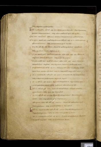 | Keywords: MCC-61050 Evangeliarium (Lebuïnuscodex) (296).jpg Artwork nl Anonymous Noordoost-Frankrijk Anonymous Rijnland Anonymous Maasland nl De kern van de boekband van de Lebuïnuscodex wordt gevormd door twee eikenhouten platten De rug en het achterplat zijn overtrokken met zeemleer Het voorplat is rijkelijk versierd met verguld zilversmeedwerk reliëfs van walrustand en verscheidene stenen De compositie van de bekleding van het voorplat wordt bepaald door een verguld zilveren filigraankruis Aan de uiteinden van de kruisarmen bevinden zich vierpassen met overhoeks vierkant eveneens met filigraan gedecoreerd Hiervan zijn er slechts twee bewaard gebleven en wel die aan de verticale kruisarmen Zij bevatten tevens nog de oorspronkelijke versiering bestaande uit een filigraanmedaillon met een pseudo-camee van respectievelijk een mannen- en een vrouwenhoofd in profiel Het snijpunt van het kruis wordt ingenomen door een ver vooruitstekend Bacchuskopje in chalcedoon te herkennen aan de kleine druiventrosjes in zijn haartooi Het kopje is gevat in een filigraanmedaillon welke op zijn beurt weer is geplaatst op een vierpas van filigraanwerk Op elk van de kruisarmen bevindt zich een ovale steen 'en cabochon' op een medaillon met filigraan Het filigraanwerk van kruis en sierstukken is in de vorm van visblazen In de ruimten tussen de kruisarmen zijn rechthoekige reliëfs van walrustand aangebracht met de vier evangelisten en hun symbool De reliëfs hebben de volgende afmetingen H 10 0 x B 5 5 cm Van links boven naar rechts onder betreft het Mattheus met de engel Johannes met de adelaar Marcus met de gevleugelde leeuw en Lucas met de gevleugelde os De figuren zijn paarsgewijs als elkaars spiegelbeeld ten opzichte van de middenas geplaatst Mattheus en Johannes zitten vrijwel geheel frontaal terwijl Marcus en Lucas meer in profiel zijn afgebeeld Qua opbouw verschillen de vier reliëfs nauwelijks van elkaar Binnen een rand van vierlobbige blaadjes verheffen zich twee zuilen met een basis een kapiteel en een dekplaat Hierop rust een rondboog geflankeerd door twee torens en afgedekt met een fronton dat boven Mattheus en Johannes boogvormig en boven Marcus en Lucas driehoekig is Onder deze overhuiving zitten de evangelisten gekleed in een lang gewaad en mantel met gekruiste benen aan een lessenaar hun blote voeten rustend op een bankje Allen zijn baardeloos en voorzien van een nimbus Voorts houden ze een pen in hun rechterhand terwijl hun linker op een boek ligt of gebarend is opgeheven Boven elk van de evangelisten verschijnt in de opening van het fronton zijn symbool met een spreukband Dit rijkelijk gedecoreerde middenveld wordt omlijst door sierbanden van verguld koper De opbouw van de sierlijsten is steeds dezelfde een opstaande smalle band die op regelmatige afstanden is voorzien van holten met aan weerszijden een brede strook voorzien van een gestanst motief Aan de lange zijden van de boekband bestaat het motief uit palmetten aan de korte zijden uit rozetten Van deze laatstgenoemde stroken ontbreekt steeds de buitenste rand Bij alle stroken met palmettenmotief wijzen de palmetten naar links met uitzondering van de buitenste strook rechtsboven die het motief in tegengestelde richting toont Verguld zilveren rozetten op de hoeken van het voorplat omgeven door een smalle rand van filigraanwerk met cirkelmotief en bekroond met een 'en cabochon' gezette steen completeren het geheel Van de rozet links onder ontbreekt de steen en is slechts de buitenste rand over Aan de voorzijde van de boekband bevinden zich nog de rudimenten van twee sluitingen between u'825' u'1000' u'1150' u'850' u'1199' u'1199' nl perkament eikenhout zilver goud koper walrustand chalcedoon glas leer Size 35 5 26 0 cm nl Hoogte 35 5cm Breedte 26 0cm Diepte 13 5cm Institution Museum Catharijneconvent object history exhibition history credit line nl Foto Museum Catharijneconvent Utrecht foto HetFotoAtelier Peter Rothengatter accession number Object number 61050 Inventory number ABM h1 place of creation https //www catharijneconvent nl/adlib/61050/ View this work on the website of Museum Catharijneconvent Museum Catharijneconvent Cc-zero <gallery> File MCC-61050_Evangeliarium_Lebuïnuscodex_ 11 jpg File MCC-61050_Evangeliarium_Lebuïnuscodex_ 172 jpg File MCC-61050_Evangeliarium_Lebuïnuscodex_ 212 jpg File MCC-61050_Evangeliarium_Lebuïnuscodex_ 61 jpg File MCC-61050_Evangeliarium_Lebuïnuscodex_ 12 jpg File MCC-61050_Evangeliarium_Lebuïnuscodex_ 213 jpg File MCC-61050_Evangeliarium_Lebuïnuscodex_ 56 jpg File MCC-61050_Evangeliarium_Lebuïnuscodex_ 232 jpg File MCC-61050_Evangeliarium_Lebuïnuscodex_ 93 jpg File MCC-61050_Evangeliarium_Lebuïnuscodex_ 99 jpg File MCC-61050_Evangeliarium_Lebuïnuscodex_ 184 jpg File MCC-61050_Evangeliarium_Lebuïnuscodex_ 64 jpg File MCC-61050_Evangeliarium_Lebuïnuscodex_ 299 jpg File MCC-61050_Evangeliarium_Lebuïnuscodex_ 86 jpg File MCC-61050_Evangeliarium_Lebuïnuscodex_ 260 jpg File MCC-61050_Evangeliarium_Lebuïnuscodex_ 159 jpg File MCC-61050_Evangeliarium_Lebuïnuscodex_ 247 jpg File MCC-61050_Evangeliarium_Lebuïnuscodex_ 180 jpg File MCC-61050_Evangeliarium_Lebuïnuscodex_ 121 jpg File MCC-61050_Evangeliarium_Lebuïnuscodex_ 315 jpg File MCC-61050_Evangeliarium_Lebuïnuscodex_ 284 jpg File MCC-61050_Evangeliarium_Lebuïnuscodex_ 33 jpg File MCC-61050_Evangeliarium_Lebuïnuscodex_ 44 jpg File MCC-61050_Evangeliarium_Lebuïnuscodex_ 258 jpg File MCC-61050_Evangeliarium_Lebuïnuscodex_ 237 jpg File MCC-61050_Evangeliarium_Lebuïnuscodex_ 20 jpg File MCC-61050_Evangeliarium_Lebuïnuscodex_ 220 jpg File MCC-61050_Evangeliarium_Lebuïnuscodex_ 279 jpg File MCC-61050_Evangeliarium_Lebuïnuscodex_ 183 jpg File MCC-61050_Evangeliarium_Lebuïnuscodex_ 60 jpg File MCC-61050_Evangeliarium_Lebuïnuscodex_ 166 jpg File MCC-61050_Evangeliarium_Lebuïnuscodex_ 97 jpg File MCC-61050_Evangeliarium_Lebuïnuscodex_ 71 jpg File MCC-61050_Evangeliarium_Lebuïnuscodex_ 132 jpg File MCC-61050_Evangeliarium_Lebuïn