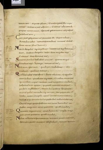 | Keywords: MCC-61050 Evangeliarium (Lebuïnuscodex) (36).jpg Artwork nl Anonymous Noordoost-Frankrijk Anonymous Rijnland Anonymous Maasland nl De kern van de boekband van de Lebuïnuscodex wordt gevormd door twee eikenhouten platten De rug en het achterplat zijn overtrokken met zeemleer Het voorplat is rijkelijk versierd met verguld zilversmeedwerk reliëfs van walrustand en verscheidene stenen De compositie van de bekleding van het voorplat wordt bepaald door een verguld zilveren filigraankruis Aan de uiteinden van de kruisarmen bevinden zich vierpassen met overhoeks vierkant eveneens met filigraan gedecoreerd Hiervan zijn er slechts twee bewaard gebleven en wel die aan de verticale kruisarmen Zij bevatten tevens nog de oorspronkelijke versiering bestaande uit een filigraanmedaillon met een pseudo-camee van respectievelijk een mannen- en een vrouwenhoofd in profiel Het snijpunt van het kruis wordt ingenomen door een ver vooruitstekend Bacchuskopje in chalcedoon te herkennen aan de kleine druiventrosjes in zijn haartooi Het kopje is gevat in een filigraanmedaillon welke op zijn beurt weer is geplaatst op een vierpas van filigraanwerk Op elk van de kruisarmen bevindt zich een ovale steen 'en cabochon' op een medaillon met filigraan Het filigraanwerk van kruis en sierstukken is in de vorm van visblazen In de ruimten tussen de kruisarmen zijn rechthoekige reliëfs van walrustand aangebracht met de vier evangelisten en hun symbool De reliëfs hebben de volgende afmetingen H 10 0 x B 5 5 cm Van links boven naar rechts onder betreft het Mattheus met de engel Johannes met de adelaar Marcus met de gevleugelde leeuw en Lucas met de gevleugelde os De figuren zijn paarsgewijs als elkaars spiegelbeeld ten opzichte van de middenas geplaatst Mattheus en Johannes zitten vrijwel geheel frontaal terwijl Marcus en Lucas meer in profiel zijn afgebeeld Qua opbouw verschillen de vier reliëfs nauwelijks van elkaar Binnen een rand van vierlobbige blaadjes verheffen zich twee zuilen met een basis een kapiteel en een dekplaat Hierop rust een rondboog geflankeerd door twee torens en afgedekt met een fronton dat boven Mattheus en Johannes boogvormig en boven Marcus en Lucas driehoekig is Onder deze overhuiving zitten de evangelisten gekleed in een lang gewaad en mantel met gekruiste benen aan een lessenaar hun blote voeten rustend op een bankje Allen zijn baardeloos en voorzien van een nimbus Voorts houden ze een pen in hun rechterhand terwijl hun linker op een boek ligt of gebarend is opgeheven Boven elk van de evangelisten verschijnt in de opening van het fronton zijn symbool met een spreukband Dit rijkelijk gedecoreerde middenveld wordt omlijst door sierbanden van verguld koper De opbouw van de sierlijsten is steeds dezelfde een opstaande smalle band die op regelmatige afstanden is voorzien van holten met aan weerszijden een brede strook voorzien van een gestanst motief Aan de lange zijden van de boekband bestaat het motief uit palmetten aan de korte zijden uit rozetten Van deze laatstgenoemde stroken ontbreekt steeds de buitenste rand Bij alle stroken met palmettenmotief wijzen de palmetten naar links met uitzondering van de buitenste strook rechtsboven die het motief in tegengestelde richting toont Verguld zilveren rozetten op de hoeken van het voorplat omgeven door een smalle rand van filigraanwerk met cirkelmotief en bekroond met een 'en cabochon' gezette steen completeren het geheel Van de rozet links onder ontbreekt de steen en is slechts de buitenste rand over Aan de voorzijde van de boekband bevinden zich nog de rudimenten van twee sluitingen between u'825' u'1000' u'1150' u'850' u'1199' u'1199' nl perkament eikenhout zilver goud koper walrustand chalcedoon glas leer Size 35 5 26 0 cm nl Hoogte 35 5cm Breedte 26 0cm Diepte 13 5cm Institution Museum Catharijneconvent object history exhibition history credit line nl Foto Museum Catharijneconvent Utrecht foto HetFotoAtelier Peter Rothengatter accession number Object number 61050 Inventory number ABM h1 place of creation https //www catharijneconvent nl/adlib/61050/ View this work on the website of Museum Catharijneconvent Museum Catharijneconvent Cc-zero <gallery> File MCC-61050_Evangeliarium_Lebuïnuscodex_ 11 jpg File MCC-61050_Evangeliarium_Lebuïnuscodex_ 172 jpg File MCC-61050_Evangeliarium_Lebuïnuscodex_ 212 jpg File MCC-61050_Evangeliarium_Lebuïnuscodex_ 61 jpg File MCC-61050_Evangeliarium_Lebuïnuscodex_ 12 jpg File MCC-61050_Evangeliarium_Lebuïnuscodex_ 213 jpg File MCC-61050_Evangeliarium_Lebuïnuscodex_ 56 jpg File MCC-61050_Evangeliarium_Lebuïnuscodex_ 232 jpg File MCC-61050_Evangeliarium_Lebuïnuscodex_ 93 jpg File MCC-61050_Evangeliarium_Lebuïnuscodex_ 99 jpg File MCC-61050_Evangeliarium_Lebuïnuscodex_ 184 jpg File MCC-61050_Evangeliarium_Lebuïnuscodex_ 64 jpg File MCC-61050_Evangeliarium_Lebuïnuscodex_ 299 jpg File MCC-61050_Evangeliarium_Lebuïnuscodex_ 86 jpg File MCC-61050_Evangeliarium_Lebuïnuscodex_ 260 jpg File MCC-61050_Evangeliarium_Lebuïnuscodex_ 159 jpg File MCC-61050_Evangeliarium_Lebuïnuscodex_ 247 jpg File MCC-61050_Evangeliarium_Lebuïnuscodex_ 180 jpg File MCC-61050_Evangeliarium_Lebuïnuscodex_ 121 jpg File MCC-61050_Evangeliarium_Lebuïnuscodex_ 315 jpg File MCC-61050_Evangeliarium_Lebuïnuscodex_ 284 jpg File MCC-61050_Evangeliarium_Lebuïnuscodex_ 33 jpg File MCC-61050_Evangeliarium_Lebuïnuscodex_ 44 jpg File MCC-61050_Evangeliarium_Lebuïnuscodex_ 258 jpg File MCC-61050_Evangeliarium_Lebuïnuscodex_ 237 jpg File MCC-61050_Evangeliarium_Lebuïnuscodex_ 20 jpg File MCC-61050_Evangeliarium_Lebuïnuscodex_ 220 jpg File MCC-61050_Evangeliarium_Lebuïnuscodex_ 279 jpg File MCC-61050_Evangeliarium_Lebuïnuscodex_ 183 jpg File MCC-61050_Evangeliarium_Lebuïnuscodex_ 60 jpg File MCC-61050_Evangeliarium_Lebuïnuscodex_ 166 jpg File MCC-61050_Evangeliarium_Lebuïnuscodex_ 97 jpg File MCC-61050_Evangeliarium_Lebuïnuscodex_ 71 jpg File MCC-61050_Evangeliarium_Lebuïnuscodex_ 132 jpg File MCC-61050_Evangeliarium_Lebuïnu