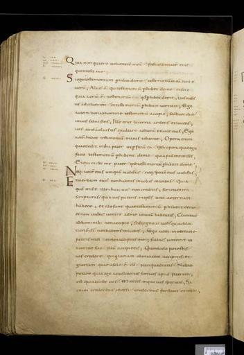 | Keywords: MCC-61050 Evangeliarium (Lebuïnuscodex) (238).jpg Artwork nl Anonymous Noordoost-Frankrijk Anonymous Rijnland Anonymous Maasland nl De kern van de boekband van de Lebuïnuscodex wordt gevormd door twee eikenhouten platten De rug en het achterplat zijn overtrokken met zeemleer Het voorplat is rijkelijk versierd met verguld zilversmeedwerk reliëfs van walrustand en verscheidene stenen De compositie van de bekleding van het voorplat wordt bepaald door een verguld zilveren filigraankruis Aan de uiteinden van de kruisarmen bevinden zich vierpassen met overhoeks vierkant eveneens met filigraan gedecoreerd Hiervan zijn er slechts twee bewaard gebleven en wel die aan de verticale kruisarmen Zij bevatten tevens nog de oorspronkelijke versiering bestaande uit een filigraanmedaillon met een pseudo-camee van respectievelijk een mannen- en een vrouwenhoofd in profiel Het snijpunt van het kruis wordt ingenomen door een ver vooruitstekend Bacchuskopje in chalcedoon te herkennen aan de kleine druiventrosjes in zijn haartooi Het kopje is gevat in een filigraanmedaillon welke op zijn beurt weer is geplaatst op een vierpas van filigraanwerk Op elk van de kruisarmen bevindt zich een ovale steen 'en cabochon' op een medaillon met filigraan Het filigraanwerk van kruis en sierstukken is in de vorm van visblazen In de ruimten tussen de kruisarmen zijn rechthoekige reliëfs van walrustand aangebracht met de vier evangelisten en hun symbool De reliëfs hebben de volgende afmetingen H 10 0 x B 5 5 cm Van links boven naar rechts onder betreft het Mattheus met de engel Johannes met de adelaar Marcus met de gevleugelde leeuw en Lucas met de gevleugelde os De figuren zijn paarsgewijs als elkaars spiegelbeeld ten opzichte van de middenas geplaatst Mattheus en Johannes zitten vrijwel geheel frontaal terwijl Marcus en Lucas meer in profiel zijn afgebeeld Qua opbouw verschillen de vier reliëfs nauwelijks van elkaar Binnen een rand van vierlobbige blaadjes verheffen zich twee zuilen met een basis een kapiteel en een dekplaat Hierop rust een rondboog geflankeerd door twee torens en afgedekt met een fronton dat boven Mattheus en Johannes boogvormig en boven Marcus en Lucas driehoekig is Onder deze overhuiving zitten de evangelisten gekleed in een lang gewaad en mantel met gekruiste benen aan een lessenaar hun blote voeten rustend op een bankje Allen zijn baardeloos en voorzien van een nimbus Voorts houden ze een pen in hun rechterhand terwijl hun linker op een boek ligt of gebarend is opgeheven Boven elk van de evangelisten verschijnt in de opening van het fronton zijn symbool met een spreukband Dit rijkelijk gedecoreerde middenveld wordt omlijst door sierbanden van verguld koper De opbouw van de sierlijsten is steeds dezelfde een opstaande smalle band die op regelmatige afstanden is voorzien van holten met aan weerszijden een brede strook voorzien van een gestanst motief Aan de lange zijden van de boekband bestaat het motief uit palmetten aan de korte zijden uit rozetten Van deze laatstgenoemde stroken ontbreekt steeds de buitenste rand Bij alle stroken met palmettenmotief wijzen de palmetten naar links met uitzondering van de buitenste strook rechtsboven die het motief in tegengestelde richting toont Verguld zilveren rozetten op de hoeken van het voorplat omgeven door een smalle rand van filigraanwerk met cirkelmotief en bekroond met een 'en cabochon' gezette steen completeren het geheel Van de rozet links onder ontbreekt de steen en is slechts de buitenste rand over Aan de voorzijde van de boekband bevinden zich nog de rudimenten van twee sluitingen between u'825' u'1000' u'1150' u'850' u'1199' u'1199' nl perkament eikenhout zilver goud koper walrustand chalcedoon glas leer Size 35 5 26 0 cm nl Hoogte 35 5cm Breedte 26 0cm Diepte 13 5cm Institution Museum Catharijneconvent object history exhibition history credit line nl Foto Museum Catharijneconvent Utrecht foto HetFotoAtelier Peter Rothengatter accession number Object number 61050 Inventory number ABM h1 place of creation https //www catharijneconvent nl/adlib/61050/ View this work on the website of Museum Catharijneconvent Museum Catharijneconvent Cc-zero <gallery> File MCC-61050_Evangeliarium_Lebuïnuscodex_ 11 jpg File MCC-61050_Evangeliarium_Lebuïnuscodex_ 172 jpg File MCC-61050_Evangeliarium_Lebuïnuscodex_ 212 jpg File MCC-61050_Evangeliarium_Lebuïnuscodex_ 61 jpg File MCC-61050_Evangeliarium_Lebuïnuscodex_ 12 jpg File MCC-61050_Evangeliarium_Lebuïnuscodex_ 213 jpg File MCC-61050_Evangeliarium_Lebuïnuscodex_ 56 jpg File MCC-61050_Evangeliarium_Lebuïnuscodex_ 232 jpg File MCC-61050_Evangeliarium_Lebuïnuscodex_ 93 jpg File MCC-61050_Evangeliarium_Lebuïnuscodex_ 99 jpg File MCC-61050_Evangeliarium_Lebuïnuscodex_ 184 jpg File MCC-61050_Evangeliarium_Lebuïnuscodex_ 64 jpg File MCC-61050_Evangeliarium_Lebuïnuscodex_ 299 jpg File MCC-61050_Evangeliarium_Lebuïnuscodex_ 86 jpg File MCC-61050_Evangeliarium_Lebuïnuscodex_ 260 jpg File MCC-61050_Evangeliarium_Lebuïnuscodex_ 159 jpg File MCC-61050_Evangeliarium_Lebuïnuscodex_ 247 jpg File MCC-61050_Evangeliarium_Lebuïnuscodex_ 180 jpg File MCC-61050_Evangeliarium_Lebuïnuscodex_ 121 jpg File MCC-61050_Evangeliarium_Lebuïnuscodex_ 315 jpg File MCC-61050_Evangeliarium_Lebuïnuscodex_ 284 jpg File MCC-61050_Evangeliarium_Lebuïnuscodex_ 33 jpg File MCC-61050_Evangeliarium_Lebuïnuscodex_ 44 jpg File MCC-61050_Evangeliarium_Lebuïnuscodex_ 258 jpg File MCC-61050_Evangeliarium_Lebuïnuscodex_ 237 jpg File MCC-61050_Evangeliarium_Lebuïnuscodex_ 20 jpg File MCC-61050_Evangeliarium_Lebuïnuscodex_ 220 jpg File MCC-61050_Evangeliarium_Lebuïnuscodex_ 279 jpg File MCC-61050_Evangeliarium_Lebuïnuscodex_ 183 jpg File MCC-61050_Evangeliarium_Lebuïnuscodex_ 60 jpg File MCC-61050_Evangeliarium_Lebuïnuscodex_ 166 jpg File MCC-61050_Evangeliarium_Lebuïnuscodex_ 97 jpg File MCC-61050_Evangeliarium_Lebuïnuscodex_ 71 jpg File MCC-61050_Evangeliarium_Lebuïnuscodex_ 132 jpg File MCC-61050_Evangeliarium_Lebuïn