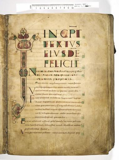 | Keywords: MCC-61050 Evangeliarium (Lebuïnuscodex) (93).jpg Artwork nl Anonymous Noordoost-Frankrijk Anonymous Rijnland Anonymous Maasland nl De kern van de boekband van de Lebuïnuscodex wordt gevormd door twee eikenhouten platten De rug en het achterplat zijn overtrokken met zeemleer Het voorplat is rijkelijk versierd met verguld zilversmeedwerk reliëfs van walrustand en verscheidene stenen De compositie van de bekleding van het voorplat wordt bepaald door een verguld zilveren filigraankruis Aan de uiteinden van de kruisarmen bevinden zich vierpassen met overhoeks vierkant eveneens met filigraan gedecoreerd Hiervan zijn er slechts twee bewaard gebleven en wel die aan de verticale kruisarmen Zij bevatten tevens nog de oorspronkelijke versiering bestaande uit een filigraanmedaillon met een pseudo-camee van respectievelijk een mannen- en een vrouwenhoofd in profiel Het snijpunt van het kruis wordt ingenomen door een ver vooruitstekend Bacchuskopje in chalcedoon te herkennen aan de kleine druiventrosjes in zijn haartooi Het kopje is gevat in een filigraanmedaillon welke op zijn beurt weer is geplaatst op een vierpas van filigraanwerk Op elk van de kruisarmen bevindt zich een ovale steen 'en cabochon' op een medaillon met filigraan Het filigraanwerk van kruis en sierstukken is in de vorm van visblazen In de ruimten tussen de kruisarmen zijn rechthoekige reliëfs van walrustand aangebracht met de vier evangelisten en hun symbool De reliëfs hebben de volgende afmetingen H 10 0 x B 5 5 cm Van links boven naar rechts onder betreft het Mattheus met de engel Johannes met de adelaar Marcus met de gevleugelde leeuw en Lucas met de gevleugelde os De figuren zijn paarsgewijs als elkaars spiegelbeeld ten opzichte van de middenas geplaatst Mattheus en Johannes zitten vrijwel geheel frontaal terwijl Marcus en Lucas meer in profiel zijn afgebeeld Qua opbouw verschillen de vier reliëfs nauwelijks van elkaar Binnen een rand van vierlobbige blaadjes verheffen zich twee zuilen met een basis een kapiteel en een dekplaat Hierop rust een rondboog geflankeerd door twee torens en afgedekt met een fronton dat boven Mattheus en Johannes boogvormig en boven Marcus en Lucas driehoekig is Onder deze overhuiving zitten de evangelisten gekleed in een lang gewaad en mantel met gekruiste benen aan een lessenaar hun blote voeten rustend op een bankje Allen zijn baardeloos en voorzien van een nimbus Voorts houden ze een pen in hun rechterhand terwijl hun linker op een boek ligt of gebarend is opgeheven Boven elk van de evangelisten verschijnt in de opening van het fronton zijn symbool met een spreukband Dit rijkelijk gedecoreerde middenveld wordt omlijst door sierbanden van verguld koper De opbouw van de sierlijsten is steeds dezelfde een opstaande smalle band die op regelmatige afstanden is voorzien van holten met aan weerszijden een brede strook voorzien van een gestanst motief Aan de lange zijden van de boekband bestaat het motief uit palmetten aan de korte zijden uit rozetten Van deze laatstgenoemde stroken ontbreekt steeds de buitenste rand Bij alle stroken met palmettenmotief wijzen de palmetten naar links met uitzondering van de buitenste strook rechtsboven die het motief in tegengestelde richting toont Verguld zilveren rozetten op de hoeken van het voorplat omgeven door een smalle rand van filigraanwerk met cirkelmotief en bekroond met een 'en cabochon' gezette steen completeren het geheel Van de rozet links onder ontbreekt de steen en is slechts de buitenste rand over Aan de voorzijde van de boekband bevinden zich nog de rudimenten van twee sluitingen between u'825' u'1000' u'1150' u'850' u'1199' u'1199' nl perkament eikenhout zilver goud koper walrustand chalcedoon glas leer Size 35 5 26 0 cm nl Hoogte 35 5cm Breedte 26 0cm Diepte 13 5cm Institution Museum Catharijneconvent object history exhibition history credit line nl Foto Museum Catharijneconvent Utrecht foto HetFotoAtelier Peter Rothengatter Reproduction title nl Begin van het evangelie van Marcus accession number Object number 61050 Inventory number ABM h1 place of creation https //www catharijneconvent nl/adlib/61050/ View this work on the website of Museum Catharijneconvent Museum Catharijneconvent Cc-zero <gallery> File MCC-61050_Evangeliarium_Lebuïnuscodex_ 11 jpg File MCC-61050_Evangeliarium_Lebuïnuscodex_ 172 jpg File MCC-61050_Evangeliarium_Lebuïnuscodex_ 212 jpg File MCC-61050_Evangeliarium_Lebuïnuscodex_ 61 jpg File MCC-61050_Evangeliarium_Lebuïnuscodex_ 12 jpg File MCC-61050_Evangeliarium_Lebuïnuscodex_ 213 jpg File MCC-61050_Evangeliarium_Lebuïnuscodex_ 56 jpg File MCC-61050_Evangeliarium_Lebuïnuscodex_ 232 jpg File MCC-61050_Evangeliarium_Lebuïnuscodex_ 93 jpg File MCC-61050_Evangeliarium_Lebuïnuscodex_ 99 jpg File MCC-61050_Evangeliarium_Lebuïnuscodex_ 184 jpg File MCC-61050_Evangeliarium_Lebuïnuscodex_ 64 jpg File MCC-61050_Evangeliarium_Lebuïnuscodex_ 299 jpg File MCC-61050_Evangeliarium_Lebuïnuscodex_ 86 jpg File MCC-61050_Evangeliarium_Lebuïnuscodex_ 260 jpg File MCC-61050_Evangeliarium_Lebuïnuscodex_ 159 jpg File MCC-61050_Evangeliarium_Lebuïnuscodex_ 247 jpg File MCC-61050_Evangeliarium_Lebuïnuscodex_ 180 jpg File MCC-61050_Evangeliarium_Lebuïnuscodex_ 121 jpg File MCC-61050_Evangeliarium_Lebuïnuscodex_ 315 jpg File MCC-61050_Evangeliarium_Lebuïnuscodex_ 284 jpg File MCC-61050_Evangeliarium_Lebuïnuscodex_ 33 jpg File MCC-61050_Evangeliarium_Lebuïnuscodex_ 44 jpg File MCC-61050_Evangeliarium_Lebuïnuscodex_ 258 jpg File MCC-61050_Evangeliarium_Lebuïnuscodex_ 237 jpg File MCC-61050_Evangeliarium_Lebuïnuscodex_ 20 jpg File MCC-61050_Evangeliarium_Lebuïnuscodex_ 220 jpg File MCC-61050_Evangeliarium_Lebuïnuscodex_ 279 jpg File MCC-61050_Evangeliarium_Lebuïnuscodex_ 183 jpg File MCC-61050_Evangeliarium_Lebuïnuscodex_ 60 jpg File MCC-61050_Evangeliarium_Lebuïnuscodex_ 166 jpg File MCC-61050_Evangeliarium_Lebuïnuscodex_ 97 jpg File MCC-61050_Evangeliarium_Lebuïnuscodex_ 71 jpg File MCC-61050_Evangeliarium_Lebu