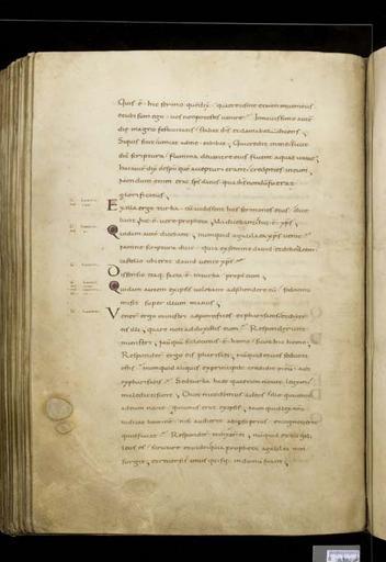 | Keywords: MCC-61050 Evangeliarium (Lebuïnuscodex) (246).jpg Artwork nl Anonymous Noordoost-Frankrijk Anonymous Rijnland Anonymous Maasland nl De kern van de boekband van de Lebuïnuscodex wordt gevormd door twee eikenhouten platten De rug en het achterplat zijn overtrokken met zeemleer Het voorplat is rijkelijk versierd met verguld zilversmeedwerk reliëfs van walrustand en verscheidene stenen De compositie van de bekleding van het voorplat wordt bepaald door een verguld zilveren filigraankruis Aan de uiteinden van de kruisarmen bevinden zich vierpassen met overhoeks vierkant eveneens met filigraan gedecoreerd Hiervan zijn er slechts twee bewaard gebleven en wel die aan de verticale kruisarmen Zij bevatten tevens nog de oorspronkelijke versiering bestaande uit een filigraanmedaillon met een pseudo-camee van respectievelijk een mannen- en een vrouwenhoofd in profiel Het snijpunt van het kruis wordt ingenomen door een ver vooruitstekend Bacchuskopje in chalcedoon te herkennen aan de kleine druiventrosjes in zijn haartooi Het kopje is gevat in een filigraanmedaillon welke op zijn beurt weer is geplaatst op een vierpas van filigraanwerk Op elk van de kruisarmen bevindt zich een ovale steen 'en cabochon' op een medaillon met filigraan Het filigraanwerk van kruis en sierstukken is in de vorm van visblazen In de ruimten tussen de kruisarmen zijn rechthoekige reliëfs van walrustand aangebracht met de vier evangelisten en hun symbool De reliëfs hebben de volgende afmetingen H 10 0 x B 5 5 cm Van links boven naar rechts onder betreft het Mattheus met de engel Johannes met de adelaar Marcus met de gevleugelde leeuw en Lucas met de gevleugelde os De figuren zijn paarsgewijs als elkaars spiegelbeeld ten opzichte van de middenas geplaatst Mattheus en Johannes zitten vrijwel geheel frontaal terwijl Marcus en Lucas meer in profiel zijn afgebeeld Qua opbouw verschillen de vier reliëfs nauwelijks van elkaar Binnen een rand van vierlobbige blaadjes verheffen zich twee zuilen met een basis een kapiteel en een dekplaat Hierop rust een rondboog geflankeerd door twee torens en afgedekt met een fronton dat boven Mattheus en Johannes boogvormig en boven Marcus en Lucas driehoekig is Onder deze overhuiving zitten de evangelisten gekleed in een lang gewaad en mantel met gekruiste benen aan een lessenaar hun blote voeten rustend op een bankje Allen zijn baardeloos en voorzien van een nimbus Voorts houden ze een pen in hun rechterhand terwijl hun linker op een boek ligt of gebarend is opgeheven Boven elk van de evangelisten verschijnt in de opening van het fronton zijn symbool met een spreukband Dit rijkelijk gedecoreerde middenveld wordt omlijst door sierbanden van verguld koper De opbouw van de sierlijsten is steeds dezelfde een opstaande smalle band die op regelmatige afstanden is voorzien van holten met aan weerszijden een brede strook voorzien van een gestanst motief Aan de lange zijden van de boekband bestaat het motief uit palmetten aan de korte zijden uit rozetten Van deze laatstgenoemde stroken ontbreekt steeds de buitenste rand Bij alle stroken met palmettenmotief wijzen de palmetten naar links met uitzondering van de buitenste strook rechtsboven die het motief in tegengestelde richting toont Verguld zilveren rozetten op de hoeken van het voorplat omgeven door een smalle rand van filigraanwerk met cirkelmotief en bekroond met een 'en cabochon' gezette steen completeren het geheel Van de rozet links onder ontbreekt de steen en is slechts de buitenste rand over Aan de voorzijde van de boekband bevinden zich nog de rudimenten van twee sluitingen between u'825' u'1000' u'1150' u'850' u'1199' u'1199' nl perkament eikenhout zilver goud koper walrustand chalcedoon glas leer Size 35 5 26 0 cm nl Hoogte 35 5cm Breedte 26 0cm Diepte 13 5cm Institution Museum Catharijneconvent object history exhibition history credit line nl Foto Museum Catharijneconvent Utrecht foto HetFotoAtelier Peter Rothengatter accession number Object number 61050 Inventory number ABM h1 place of creation https //www catharijneconvent nl/adlib/61050/ View this work on the website of Museum Catharijneconvent Museum Catharijneconvent Cc-zero <gallery> File MCC-61050_Evangeliarium_Lebuïnuscodex_ 11 jpg File MCC-61050_Evangeliarium_Lebuïnuscodex_ 172 jpg File MCC-61050_Evangeliarium_Lebuïnuscodex_ 212 jpg File MCC-61050_Evangeliarium_Lebuïnuscodex_ 61 jpg File MCC-61050_Evangeliarium_Lebuïnuscodex_ 12 jpg File MCC-61050_Evangeliarium_Lebuïnuscodex_ 213 jpg File MCC-61050_Evangeliarium_Lebuïnuscodex_ 56 jpg File MCC-61050_Evangeliarium_Lebuïnuscodex_ 232 jpg File MCC-61050_Evangeliarium_Lebuïnuscodex_ 93 jpg File MCC-61050_Evangeliarium_Lebuïnuscodex_ 99 jpg File MCC-61050_Evangeliarium_Lebuïnuscodex_ 184 jpg File MCC-61050_Evangeliarium_Lebuïnuscodex_ 64 jpg File MCC-61050_Evangeliarium_Lebuïnuscodex_ 299 jpg File MCC-61050_Evangeliarium_Lebuïnuscodex_ 86 jpg File MCC-61050_Evangeliarium_Lebuïnuscodex_ 260 jpg File MCC-61050_Evangeliarium_Lebuïnuscodex_ 159 jpg File MCC-61050_Evangeliarium_Lebuïnuscodex_ 247 jpg File MCC-61050_Evangeliarium_Lebuïnuscodex_ 180 jpg File MCC-61050_Evangeliarium_Lebuïnuscodex_ 121 jpg File MCC-61050_Evangeliarium_Lebuïnuscodex_ 315 jpg File MCC-61050_Evangeliarium_Lebuïnuscodex_ 284 jpg File MCC-61050_Evangeliarium_Lebuïnuscodex_ 33 jpg File MCC-61050_Evangeliarium_Lebuïnuscodex_ 44 jpg File MCC-61050_Evangeliarium_Lebuïnuscodex_ 258 jpg File MCC-61050_Evangeliarium_Lebuïnuscodex_ 237 jpg File MCC-61050_Evangeliarium_Lebuïnuscodex_ 20 jpg File MCC-61050_Evangeliarium_Lebuïnuscodex_ 220 jpg File MCC-61050_Evangeliarium_Lebuïnuscodex_ 279 jpg File MCC-61050_Evangeliarium_Lebuïnuscodex_ 183 jpg File MCC-61050_Evangeliarium_Lebuïnuscodex_ 60 jpg File MCC-61050_Evangeliarium_Lebuïnuscodex_ 166 jpg File MCC-61050_Evangeliarium_Lebuïnuscodex_ 97 jpg File MCC-61050_Evangeliarium_Lebuïnuscodex_ 71 jpg File MCC-61050_Evangeliarium_Lebuïnuscodex_ 132 jpg File MCC-61050_Evangeliarium_Lebuïn