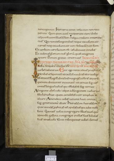 Keywords: MCC-61090 Evangelistarium (Ansfriduscodex) (8).tif Artwork nl Anonymous Neder-Rijn Anonymous St Gallen OSB nl De kern van de boekband van de Ansfriduscodex wordt gevormd door twee eikenhouten platten Het voorplat bestaat uit een verdiept middenveld omgeven door een brede rand Het is beslagen met dunne verguld zilveren platen In het middenveld bevindt zich een verguld zilveren kruis met een verhoogd ingezwenkt achtkantig middenstuk en breed uitlopende armen Het kruis is versierd met filigraan en vijf halfedelstenen te weten een ronde steen van amethist en kornalijn op het snijpunt van de beide kruisarmen een lichtblauwe kwarts respectievelijk een agaat op de brede uiteinden van de verticale kruisarmen en twee nog niet nader bestemde stenen op de horizontale kruisarmen Het filigraanwerk bestaat uit cirkelvormige uitwaaierende ranken met bolletjes aan de uiteinden en in het midden hier en daar kleine rozetjes In de vier velden tussen de kruisarmen zijn steeds twee stenen in een diagonale lijn geplaatst Van boven naar beneden en van links naar rechts betreft het bergkristal en amethist amethist en kwarts kwarts de andere steen is verloren gegaan kwarts en amethist De brede rand rond het verdiepte middenveld is eveneens rijkelijk versierd Op de hoeken zijn geƫmailleerde medaillons met de evangelistensymbolen aangebracht De banderol die de figuren dragen vermeldt de naam van de evangelist Van links boven naar rechts onder betreft het de adelaar van Johannes de gevleugelde mens van Mattheus de gevleugelde leeuw van Marcus en de gevleugelde stier van Lucas Tussen de grote medaillons verdeeld over de lange en korte zijden van de rand bevinden zich zes kleinere geƫmailleerde medaillons Hiervan vormen de bovenste twee op de lange zijden tezamen de kroning van Maria links de gekroonde Moeder Gods en rechts de zegenende Christus Eronder bevinden zich twee medaillons waarop met wierookvaten zwaaiende engelen Op de korte zijden tonen de twee medaillons een afbeelding van een opspringend hert Op de rand bevinden zich verder nog vier alsengemmen met gegraveerde primitieve figuurtjes en zestien halfedelstenen waaronder kwarts amethist bergkristal jaspis en een lagensteen niccolo genaamd Zeven van deze stenen zijn voorzien van een gegraveerde mythologische voorstelling Zie Snijder 1932 voor een gedetailleerde beschrijving van de stenen en voorstellingen De rode rechthoekige jaspis in de onderrand bevat een koefische inscriptie die betekent 'Stel uw vertrouwen in Allah en zoek contact met den heer der getrouwen' Alle sierstukken alsmede de armen en de acht segmenten van het middenstuk van het kruis zijn omlijst met gedraaid gouddraad De rug en het achterplat zijn overtrokken met van oorsprong rood fluweel met rozenmotief Op het achterplat zijn vijf gegraveerde zilveren stukken aangebracht te weten vier ronde medaillons op de hoeken en in het midden een amandelvormige plaquette met een afbeelding van een bisschop omgeven door een rand met palmettenmotief In de buitenste rand staat de volgende Latijnse tekst gegraveerd ORNATU LAPIDUM RUTILANS AUROQUE POLITUM / PRAESULIS ANSFRIDI MARTINO MUNUS OBIVI vert 'versierd met flonkerende edelstenen en schitterend goud ben ik het boek een geschenk van bisschop Ansfridus aan Martinus de Utrechtse Martinuskerk' between u'950' u'1000' u'1000' u'1499' nl perkament eikenhout zilver goud kwarts amethist glas kornalijn bergkristal niccolo jaspis agaat fluweel Size 34 0 26 5 cm nl Hoogte 34 0cm Breedte 26 5cm Diepte 10 0cm Institution Museum Catharijneconvent object history exhibition history credit line nl Foto Museum Catharijneconvent Utrecht foto HetFotoAtelier Peter Rothengatter accession number Object number 61090 Inventory number ABM h2 place of creation https //www catharijneconvent nl/adlib/61090/ View this work on the website of Museum Catharijneconvent Museum Catharijneconvent Cc-zero <gallery> File MCC-61090_Evangelistarium_Ansfriduscodex_ 319 tif File MCC-61090_Evangelistarium_Ansfriduscodex_ 157 tif File MCC-61090_Evangelistarium_Ansfriduscodex_ 103 tif File MCC-61090_Evangelistarium_Ansfriduscodex_ 279 tif File MCC-61090_Evangelistarium_Ansfriduscodex_ 250 tif File MCC-61090_Evangelistarium_Ansfriduscodex_ 104 tif File MCC-61090_Evangelistarium_Ansfriduscodex_ 96 tif File MCC-61090_Evangelistarium_Ansfriduscodex_ 276 tif File MCC-61090_Evangelistarium_Ansfriduscodex_ 114 tif File MCC-61090_Evangelistarium_Ansfriduscodex_ 233 tif File MCC-61090_Evangelistarium_Ansfriduscodex_ 195 tif File MCC-61090_Evangelistarium_Ansfriduscodex_ 261 tif File MCC-61090_Evangelistarium_Ansfriduscodex_ 73 tif File MCC-61090_Evangelistarium_Ansfriduscodex_ 105 tif File MCC-61090_Evangelistarium_Ansfriduscodex_ 40 tif File MCC-61090_Evangelistarium_Ansfriduscodex_ 231 tif File MCC-61090_Evangelistarium_Ansfriduscodex_ 48 tif File MCC-61090_Evangelistarium_Ansfriduscodex_ 43 tif File MCC-61090_Evangelistarium_Ansfriduscodex_ 50 tif File MCC-61090_Evangelistarium_Ansfriduscodex_ 1 tif File MCC-61090_Evangelistarium_Ansfriduscodex_ 198 tif File MCC-61090_Evangelistarium_Ansfriduscodex_ 144 tif File MCC-61090_Evangelistarium_Ansfriduscodex_ 293 tif File MCC-61090_Evangelistarium_Ansfriduscodex_ 109 tif File MCC-61090_Evangelistarium_Ansfriduscodex_ 318 tif File MCC-61090_Evangelistarium_Ansfriduscodex_ 254 tif File MCC-61090_Evangelistarium_Ansfriduscodex_ 301 tif File MCC-61090_Evangelistarium_Ansfriduscodex_ 107 tif File MCC-61090_Evangelistarium_Ansfriduscodex_ 284 tif File MCC-61090_Evangelistarium_Ansfriduscodex_ 251 tif File MCC-61090_Evangelistarium_Ansfriduscodex_ 121 tif File MCC-61090_Evangelistarium_Ansfriduscodex_ 172 tif File MCC-61090_Evangelistarium_Ansfriduscodex_ 213 tif File MCC-61090_Evangelistarium_Ansfriduscodex_ 264 tif File MCC-61090_Evangelistarium_Ansfriduscodex_ 118 tif File MCC-61090_Evangelistarium_Ansfriduscodex_ 90 tif File MCC-61090_Evangelistarium_Ansfriduscodex_ 287 tif File MCC-61090_Evangelistarium_Ansfriduscodex_ 260 tif File MCC-61090_Evang