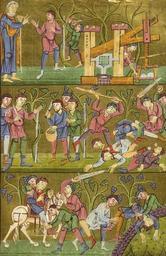 | Keywords: MCC-68515 Evangelistarium (Bernulphuscodex) (125).jpg Artwork nl Anonymous Zuid-Duitsland Reichenau OSB nl De kern van de boekband van de Bernulphuscodex wordt gevormd door twee eikenhouten platten De rug en het achterplat zijn overtrokken met zeemleer Het voorplat bestaat uit een enigszins verdiept rechthoekig middenveld omgeven door een brede rand In het middenveld bevindt zich een verguld zilveren filigraankruis met een verhoogd ingezwenkt achtkantig middenstuk en breed uitlopende armen Het filigraanwerk bestaat uit cirkelvormige uitwaaierende ranken met bolletjes aan de uiteinden en in het midden hier en daar kleine rozetjes Op het snijpunt van beide kruisarmen bevindt zich een ovale zwartblauw en grijs gekleurde onyx in de bovenarm een klassiek gesneden vrouwenkop van chalcedoon op de rechterarm een stuk donkerrood glas en beneden een bruin gestreepte agaat De bekleding van de linker kruisarm ontbreekt De lager gelegen velden tussen de kruisarmen zijn bekleed met dunne gouden platen Langs de randen hiervan is een parelrandje gestanst In het midden van de velden bevindt zich een medaillon met email-cloisonné De bovenste twee zijn voorzien van een diagonaal patroon met witte getrapte vierkantjes met rode stip tegen een donkerblauwe achtergrond Op de onderste twee is een stervormig respectievelijk concentrisch patroon aangebracht De aldaar toegepaste kleuren zijn translucide groen opaak wit geel en bruinpaars In de buitenste hoeken van de lager gelegen velden zijn ronde stenen in een vierkante zetting aangebracht Hiervan is slechts de opaal in de rechter bovenhoek bewaard gebleven In de overige hoeken is alleen nog de vierkante uitsparing te zien De brede rand is overtrokken met verguld zilveren stroken met grote rozetten die van elkaar gescheiden zijn door vier kleine stippelroosjes tussen twee evenwijdig lopende parelrandjes Aan de korte zijden van het voorplat ontbreekt de rozettenrand; slechts de spijkers waarmee ze waren vastgemaakt zijn nog te zien Aan de lange zijde ontbreekt een stuk uit de rand en wel links onder het midden Verdeeld over de nog aanwezige rozetten zijn vier alsengemmen en twee zilveren medaillons aangebracht Laatstgenoemde zijn versierd met een gezicht en bladwerk Vier medaillons met de evangelistensymbolen zijn op de hoeken van de brede rand aangebracht van links boven naar rechts onder betreft het de adelaar van Johannes de engel van Mattheus de gevleugelde os van Lucas en de gevleugelde leeuw van Marcus De banderol die de figuren dragen vermeldt de naam van de betreffende evangelist De naam van Marcus staat in spiegelbeeld Het woord Lucas is over andere letters gekrast De armen van het kruis de acht segmenten van het middenstuk alsmede de sierstukken zijn omlijst met een fijn geparelde gouden filigraandraad Techniek nog in te vullen volgens Korteweg zijn de medaillons met symbolen van Marcus en Lucas uit een graveerplaat gezaagd; rozetten in rand gestanst De sierlijst met rozetten is met behulp van kleine spijkertjes op de houten rand bevestigd Staat nog in te vullen Volgens Korteweg 1979 waren de medaillons met de symbolen van Johannes en Mattheus oorspronkelijk geëmailleerd De velden vertonen nog sporen van gekleurd email Volgens Steenbock 1965 waren het juist de medaillons met Lucas en Marcus Volgens Korteweg 1979 is het verguldsel van de stroken met rozetten enigszins afgesleten Onder de linkerzijde van het metaalwerk van het voorplat bevindt zich rode zijde; aan de smalle zijden van het voorplat ontbreken de rozettenranden slechts de spijkers waarmee ze waren vastgemaakt zijn nog te zien Aan de lange zijde links onder het midden ontbreekt een stuk uit de rand Van het chalcedonen vrouwenkopje ontbreekt de neus en is de kin beschadigd between u'1040' u'1200' u'1050' u'1499' nl perkament eikenhout zilver goud chalcedoon onyx glas agaat opaal Size 31 5 24 0 cm nl Hoogte 31 5cm Breedte 24 0cm Diepte 9 8cm Institution Museum Catharijneconvent object history exhibition history credit line nl Foto Museum Catharijneconvent Utrecht foto HetFotoAtelier Peter Rothengatter accession number Object number 68515 Inventory number ABM h3 place of creation https //www catharijneconvent nl/adlib/68515/ View this work on the website of Museum Catharijneconvent Museum Catharijneconvent Cc-zero <gallery> File MCC-68515_Evangelistarium_Bernulphuscodex_ 353 jpg File MCC-68515_Evangelistarium_Bernulphuscodex_ 412 jpg File MCC-68515_Evangelistarium_Bernulphuscodex_ 160 jpg File MCC-68515_Evangelistarium_Bernulphuscodex_ 6 jpg File MCC-68515_Evangelistarium_Bernulphuscodex_ 393 jpg File MCC-68515_Evangelistarium_Bernulphuscodex_ 89 jpg File MCC-68515_Evangelistarium_Bernulphuscodex_ 270 jpg File MCC-68515_Evangelistarium_Bernulphuscodex_ 425 jpg File MCC-68515_Evangelistarium_Bernulphuscodex_ 104 jpg File MCC-68515_Evangelistarium_Bernulphuscodex_ 291 jpg File MCC-68515_Evangelistarium_Bernulphuscodex_ 398 jpg File MCC-68515_Evangelistarium_Bernulphuscodex_ 339 jpg File MCC-68515_Evangelistarium_Bernulphuscodex_ 65 jpg File MCC-68515_Evangelistarium_Bernulphuscodex_ 403 jpg File MCC-68515_Evangelistarium_Bernulphuscodex_ 311 jpg File MCC-68515_Evangelistarium_Bernulphuscodex_ 159 jpg File MCC-68515_Evangelistarium_Bernulphuscodex_ 347 jpg File MCC-68515_Evangelistarium_Bernulphuscodex_ 453 jpg File MCC-68515_Evangelistarium_Bernulphuscodex_ 289 jpg File MCC-68515_Evangelistarium_Bernulphuscodex_ 273 jpg File MCC-68515_Evangelistarium_Bernulphuscodex_ 286 jpg File MCC-68515_Evangelistarium_Bernulphuscodex_ 236 jpg File MCC-68515_Evangelistarium_Bernulphuscodex_ 447 jpg File MCC-68515_Evangelistarium_Bernulphuscodex_ 227 jpg File MCC-68515_Evangelistarium_Bernulphuscodex_ 110 jpg File MCC-68515_Evangelistarium_Bernulphuscodex_ 139 jpg File MCC-68515_Evangelistarium_Bernulphuscodex_ 276 jpg File MCC-68515_Evangelistarium_Bernulphuscodex_ 10 jpg File MCC-68515_Evangelistarium_Bernulphuscodex_ 325 jpg File MCC-68515_Evangelistarium_Bernulphuscodex_ 154 jpg File MCC-68515_
