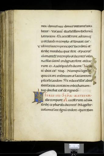 | Keywords: MCC-68515 Evangelistarium (Bernulphuscodex) (109).jpg Artwork nl Anonymous Zuid-Duitsland Reichenau OSB nl De kern van de boekband van de Bernulphuscodex wordt gevormd door twee eikenhouten platten De rug en het achterplat zijn overtrokken met zeemleer Het voorplat bestaat uit een enigszins verdiept rechthoekig middenveld omgeven door een brede rand In het middenveld bevindt zich een verguld zilveren filigraankruis met een verhoogd ingezwenkt achtkantig middenstuk en breed uitlopende armen Het filigraanwerk bestaat uit cirkelvormige uitwaaierende ranken met bolletjes aan de uiteinden en in het midden hier en daar kleine rozetjes Op het snijpunt van beide kruisarmen bevindt zich een ovale zwartblauw en grijs gekleurde onyx in de bovenarm een klassiek gesneden vrouwenkop van chalcedoon op de rechterarm een stuk donkerrood glas en beneden een bruin gestreepte agaat De bekleding van de linker kruisarm ontbreekt De lager gelegen velden tussen de kruisarmen zijn bekleed met dunne gouden platen Langs de randen hiervan is een parelrandje gestanst In het midden van de velden bevindt zich een medaillon met email-cloisonné De bovenste twee zijn voorzien van een diagonaal patroon met witte getrapte vierkantjes met rode stip tegen een donkerblauwe achtergrond Op de onderste twee is een stervormig respectievelijk concentrisch patroon aangebracht De aldaar toegepaste kleuren zijn translucide groen opaak wit geel en bruinpaars In de buitenste hoeken van de lager gelegen velden zijn ronde stenen in een vierkante zetting aangebracht Hiervan is slechts de opaal in de rechter bovenhoek bewaard gebleven In de overige hoeken is alleen nog de vierkante uitsparing te zien De brede rand is overtrokken met verguld zilveren stroken met grote rozetten die van elkaar gescheiden zijn door vier kleine stippelroosjes tussen twee evenwijdig lopende parelrandjes Aan de korte zijden van het voorplat ontbreekt de rozettenrand; slechts de spijkers waarmee ze waren vastgemaakt zijn nog te zien Aan de lange zijde ontbreekt een stuk uit de rand en wel links onder het midden Verdeeld over de nog aanwezige rozetten zijn vier alsengemmen en twee zilveren medaillons aangebracht Laatstgenoemde zijn versierd met een gezicht en bladwerk Vier medaillons met de evangelistensymbolen zijn op de hoeken van de brede rand aangebracht van links boven naar rechts onder betreft het de adelaar van Johannes de engel van Mattheus de gevleugelde os van Lucas en de gevleugelde leeuw van Marcus De banderol die de figuren dragen vermeldt de naam van de betreffende evangelist De naam van Marcus staat in spiegelbeeld Het woord Lucas is over andere letters gekrast De armen van het kruis de acht segmenten van het middenstuk alsmede de sierstukken zijn omlijst met een fijn geparelde gouden filigraandraad Techniek nog in te vullen volgens Korteweg zijn de medaillons met symbolen van Marcus en Lucas uit een graveerplaat gezaagd; rozetten in rand gestanst De sierlijst met rozetten is met behulp van kleine spijkertjes op de houten rand bevestigd Staat nog in te vullen Volgens Korteweg 1979 waren de medaillons met de symbolen van Johannes en Mattheus oorspronkelijk geëmailleerd De velden vertonen nog sporen van gekleurd email Volgens Steenbock 1965 waren het juist de medaillons met Lucas en Marcus Volgens Korteweg 1979 is het verguldsel van de stroken met rozetten enigszins afgesleten Onder de linkerzijde van het metaalwerk van het voorplat bevindt zich rode zijde; aan de smalle zijden van het voorplat ontbreken de rozettenranden slechts de spijkers waarmee ze waren vastgemaakt zijn nog te zien Aan de lange zijde links onder het midden ontbreekt een stuk uit de rand Van het chalcedonen vrouwenkopje ontbreekt de neus en is de kin beschadigd between u'1040' u'1200' u'1050' u'1499' nl perkament eikenhout zilver goud chalcedoon onyx glas agaat opaal Size 31 5 24 0 cm nl Hoogte 31 5cm Breedte 24 0cm Diepte 9 8cm Institution Museum Catharijneconvent object history exhibition history credit line nl Foto Museum Catharijneconvent Utrecht foto HetFotoAtelier Peter Rothengatter accession number Object number 68515 Inventory number ABM h3 place of creation https //www catharijneconvent nl/adlib/68515/ View this work on the website of Museum Catharijneconvent Museum Catharijneconvent Cc-zero <gallery> File MCC-68515_Evangelistarium_Bernulphuscodex_ 353 jpg File MCC-68515_Evangelistarium_Bernulphuscodex_ 412 jpg File MCC-68515_Evangelistarium_Bernulphuscodex_ 160 jpg File MCC-68515_Evangelistarium_Bernulphuscodex_ 6 jpg File MCC-68515_Evangelistarium_Bernulphuscodex_ 393 jpg File MCC-68515_Evangelistarium_Bernulphuscodex_ 89 jpg File MCC-68515_Evangelistarium_Bernulphuscodex_ 270 jpg File MCC-68515_Evangelistarium_Bernulphuscodex_ 425 jpg File MCC-68515_Evangelistarium_Bernulphuscodex_ 104 jpg File MCC-68515_Evangelistarium_Bernulphuscodex_ 291 jpg File MCC-68515_Evangelistarium_Bernulphuscodex_ 398 jpg File MCC-68515_Evangelistarium_Bernulphuscodex_ 339 jpg File MCC-68515_Evangelistarium_Bernulphuscodex_ 65 jpg File MCC-68515_Evangelistarium_Bernulphuscodex_ 403 jpg File MCC-68515_Evangelistarium_Bernulphuscodex_ 311 jpg File MCC-68515_Evangelistarium_Bernulphuscodex_ 159 jpg File MCC-68515_Evangelistarium_Bernulphuscodex_ 347 jpg File MCC-68515_Evangelistarium_Bernulphuscodex_ 453 jpg File MCC-68515_Evangelistarium_Bernulphuscodex_ 289 jpg File MCC-68515_Evangelistarium_Bernulphuscodex_ 273 jpg File MCC-68515_Evangelistarium_Bernulphuscodex_ 286 jpg File MCC-68515_Evangelistarium_Bernulphuscodex_ 236 jpg File MCC-68515_Evangelistarium_Bernulphuscodex_ 447 jpg File MCC-68515_Evangelistarium_Bernulphuscodex_ 227 jpg File MCC-68515_Evangelistarium_Bernulphuscodex_ 110 jpg File MCC-68515_Evangelistarium_Bernulphuscodex_ 139 jpg File MCC-68515_Evangelistarium_Bernulphuscodex_ 276 jpg File MCC-68515_Evangelistarium_Bernulphuscodex_ 10 jpg File MCC-68515_Evangelistarium_Bernulphuscodex_ 325 jpg File MCC-68515_Evangelistarium_Bernulphuscodex_ 154 jpg File MCC-68515_