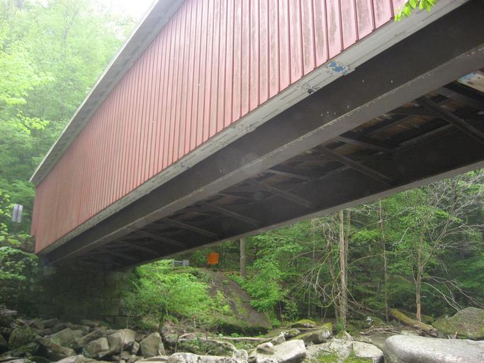 Keywords: McConnell's Mill Covered Bridge underside.jpg 40 57 10 N 80 10 14 W Northern side and underside of w McConnell's Mill Covered Bridge at McConnells Mill State Park located in far eastern Slippery Rock Township Lawrence County Pennsylvania Slippery Rock Township Lawrence County Pennsylvania Lawrence County Pennsylvania United States Built in 1874 the bridge is listed on the National Register of Historic Places Picture taken from rocks below the western end of the bridge Own 2009-05-16 User Nyttend Nyttend No<nowiki></nowiki>ne Canyons McConnell's Mill Covered Bridge Undersides of bridges in the United States Building-centered pictures by User Nyttend Taken with Canon PowerShot A540 |