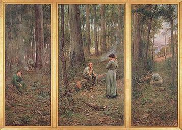 | Keywords: McCubbin pioneer1904.jpg Frederick McCubbin - The pioneer - Google Art Project jpg Artwork Creator Frederick McCubbin 1904 ucfirst oil on canvas cm 225 295 7 institution National Gallery of Victoria The Ian Potter Centre NGV Australia 2 Gallery 6 place of discovery object history ProvenanceEvent 1906 purchase LangSwitch die the la de ~ National Gallery of Victoria Melbourne exhibition history Winter Exhibition Victorian Artists' Society 1905 43 The Pioneer credit line Felton Bequest 1906 FM<sup>c</sup>Cubbin / 1904 signature/date bottom right ~ On the right canvas SACRED / center right en On the right canvas on the wooden cross WINSOR NEWTON / / E W COLE / / / STREET / MELBOURNE verso stamp ink en accession number 253-2 place of creation Melbourne www ngv vic gov au http //www ngv vic gov au Home http //www ngv vic gov au/collection/australian/painting/m/apa00043 html Info Frederick McCubbin - The pioneer - Google Art Project jpg Version from Google Cultural Institute 5990 The pioneer Q7757227 PD-old-100 DEFAULTSORT Mccubin Frederick 1904 Frederick McCubbin 1904 Triptychs Australian paintings in the National Gallery of Victoria 1904 paintings Mount Macedon Victoria The Ian Potter Centre NGV Australia |