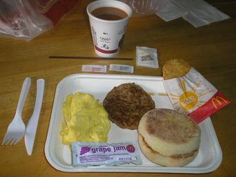 Keywords: McDonalds Big Breakfast.JPG en McDonald's Big Breakfast own Pp0912 2009-10-23 Trays with food McDonald's products Food with drink Paper cups Jam