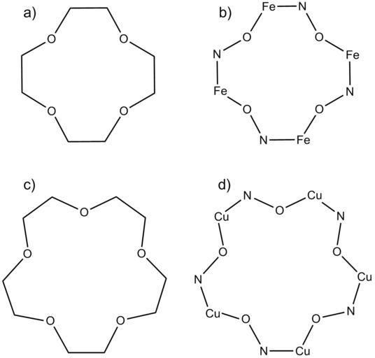 Keywords: Mcwiki.png en Figure showing the metallacrown analogy to crown ethers own Chem507f092 2009-12-04 Organometallic compounds Macrocyclic compounds