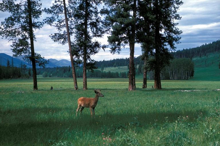 Keywords: meadow deer mountains wildlife nature landscape scenic national park america western doe female outdoors trees grass