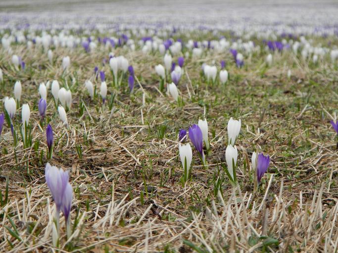 Keywords: meadow flowers crocus spring blue purple violet bloom mountains natural wonders
