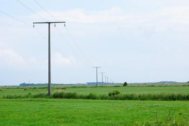 Keywords: meadow green horizon power poles power line electricity