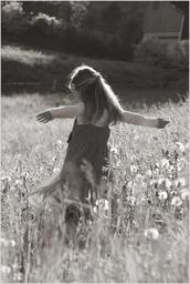 Keywords: meadow luck dance sepia girl child nature spring ease