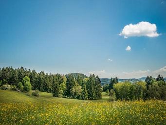 Keywords: meadow nature landscape clouds sky spring hill mountain landscape grass rest hiking