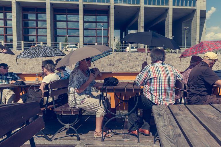 Keywords: measles wrocław ostrów tumski poland lower silesia germany tourists tour visit ship cruise rafting umbrella umbrellas summer spring autumn the sun sky river old age pensioner pensioners woman male
