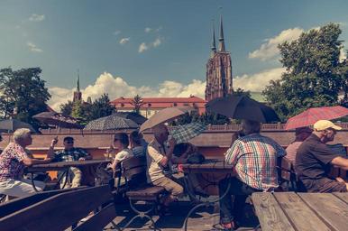 Keywords: measles wrocław ostrów tumski poland lower silesia germany tourists tour visit ship cruise rafting umbrella umbrellas summer spring autumn the sun sky river old age pensioner pensioners woman male