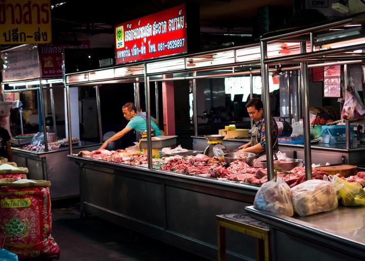 Keywords: meat seller warorot market chiang mai north thailand