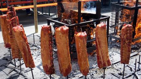 Keywords: meat smoked pork chops fire barbecue eat pleasure skewers meat skewer embers heat