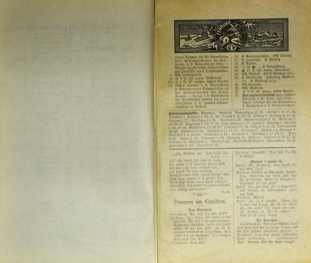 | Keywords: Mecklenburgischer Kalender 1909 006.jpg Großherzoglich Mecklenburg-Schwerinscher und Mecklenburg Strelitzscher Kalender für 1909 Hinstorff'sche Verlagsanstalt Wismar own photo of item in own collection 1909 anonymous PD-old-100 Mecklenburgischer Kalender 1909 Photos by User AndreasPraefcke |