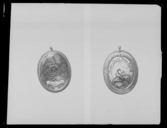 | Keywords: Medaljong - Livrustkammaren - 36554.tif LSH artwork sv Oval medaljong täckt på framsidan av fasettslipat glas i slät fattning därunder matt av cendréfärgat hår över vilket är fäst krönt spegelmonogram av guld V E omgivet av grönemaljerad palmbladskrans nertill vitemaljerat textband med svart text Makalös <br/>Baksidan täckt med polykrom emaljmålning fyrbladig grön växt rosabrunt moln upptill vitt band med svart text Dulce Meum Terra Tegitur nedanför bandet syns delvis en strålande sol Svagt fyrpassformig ram av guld med graverade detaljer längs kanten en dubbel repstav av guld Vid överkanten en ring av guld <br/> Tidigare trodde man att medaljongen var ifrån 1720-talet men senare efterforskningar tyder på att denna sannolikt är tillverkad 1741 i samband med Ulrika Eleonora d y död Texten Dulce meum terra tegitur Jorden täcker min söta kan härledas till Mary Queen of Scots 1542-1587 Hon myntade devisen då hennes första make Francis II av Frankrike 1544-1560 dog Hon kopplade också devisen till lakritsplantan där bladen ovan jord är bittra men plantans rot som göms i jorden är söt Möjligen är det en lakritsplanta som syns på frånsidan av Ulrika Eleonoras medaljong <br/>lefi 2015-08-12 original caption 1741-tal gold - glass - enamel Färg polykrom material emalj - glass g 11 size mm 22 30 8 LRK Ulrika Eleonora av Sverige Spelet om Skåne 1993 Drottning i fiendeland 1995 Det Glittrar prel till 30 aug 2015 2014-2015 Livrustkammaren place of origin original filename LN_E01860 37632 inventory number LRK 1057 36554 CC0 Medaljong - Livrustkammaren - 36554-negative tif <gallery caption Different images of same object > File Baksida av medaljong med texten Dulce Meum Terra Tegitur - Livrustkammaren - 97853 tif File Medaljong med cendréfärgat hår över vilket är fäst krönt spegelmonogram av guld U E - Livrustkammaren - 97852 tif </gallery> Jewellery Media contributed by LSH malformated year Media contributed by LSH 2015-11 |