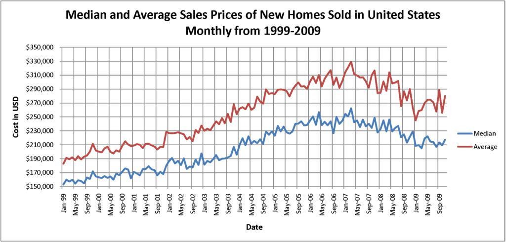 | Keywords: Median and Average Sales Prices of New Homes Sold in United States Monthly from 1999-2009.png en A graph showing the Median and Average Sales Prices of New Homes Sold in United States It shows the monthly data from 1999 through 2009 It should be noted that the sales price includes the land This graph is made using the data from The graph was made in excel I Smallman12q talk created this graph based on the tables provided by the US Census Bureau at http //www census gov/const/uspricemon pdf http //www mediafire com/ 7si89zm84plx3 Graph file 13 32 5 January 2010 UTC Smallman12q talk File Median_and_Average_Sales_Prices_of_New_Homes_Sold_in_United_States_Monthly_from_1999-2009 pdf The data is as follows center style background f0f0f0; Date center style background f0f0f0; Median center style background f0f0f0; Average - Jan-99 153 100 182 900 - Feb-99 160 000 191 400 - Mar-99 157 300 189 300 - Apr-99 159 900 192 200 - May-99 154 400 187 900 - Jun-99 159 300 193 900 - Jul-99 158 200 189 100 - Aug-99 154 800 193 100 - Sep-99 163 200 194 800 - Oct-99 161 100 200 200 - Nov-99 172 000 211 500 - Dec-99 164 800 202 100 - Jan-00 163 500 200 300 - Feb-00 162 400 199 200 - Mar-00 165 100 204 900 - Apr-00 162 600 207 300 - May-00 164 700 200 000 - Jun-00 160 100 197 700 - Jul-00 169 000 202 200 - Aug-00 166 600 200 200 - Sep-00 171 500 208 300 - Oct-00 176 300 215 100 - Nov-00 174 700 210 700 - Dec-00 162 000 208 100 - Jan-01 171 300 209 000 - Feb-01 169 100 211 000 - Mar-01 166 300 210 200 - Apr-01 175 200 205 500 - May-01 175 300 211 400 - Jun-01 179 400 211 700 - Jul-01 175 000 209 300 - Aug-01 173 700 207 500 - Sep-01 166 400 203 300 - Oct-01 171 300 207 100 - Nov-01 168 100 206 900 - Dec-01 180 200 228 700 - Jan-02 187 100 226 900 - Feb-02 191 100 226 500 - Mar-02 183 400 227 100 - Apr-02 187 100 228 100 - May-02 181 000 226 500 - Jun-02 190 600 225 200 - Jul-02 175 600 217 800 - Aug-02 178 900 221 300 - Sep-02 177 500 215 300 - Oct-02 189 200 231 300 - Nov-02 181 200 227 100 - Dec-02 197 600 237 800 - Jan-03 181 700 230 200 - Feb-03 187 000 233 400 - Mar-03 185 100 231 100 - Apr-03 189 500 237 200 - May-03 195 500 243 700 - Jun-03 187 900 239 700 - Jul-03 190 200 248 400 - Aug-03 190 500 241 000 - Sep-03 192 000 254 500 - Oct-03 194 100 242 800 - Nov-03 207 100 268 300 - Dec-03 196 000 253 900 - Jan-04 209 500 262 100 - Feb-04 219 600 264 100 - Mar-04 209 600 261 000 - Apr-04 222 300 269 300 - May-04 211 700 260 400 - Jun-04 215 700 263 200 - Jul-04 212 400 279 200 - Aug-04 218 100 272 200 - Sep-04 211 600 269 200 - Oct-04 229 200 289 600 - Nov-04 224 500 283 200 - Dec-04 229 600 284 300 - Jan-05 223 100 283 000 - Feb-05 237 300 289 100 - Mar-05 229 300 289 600 - Apr-05 236 300 289 100 - May-05 228 300 287 400 - Jun-05 226 100 279 600 - Jul-05 229 200 289 300 - Aug-05 240 100 295 000 - Sep-05 240 400 299 600 - Oct-05 243 900 293 600 - Nov-05 237 900 294 400 - Dec-05 238 600 290 200 - Jan-06 244 900 301 000 - Feb-06 250 800 307 900 - Mar-06 238 800 298 800 - Apr-06 257 000 310 300 - May-06 238 200 293 900 - Jun-06 243 200 305 000 - Jul-06 238 100 311 300 - Aug-06 243 900 317 300 - Sep-06 226 700 296 200 - Oct-06 250 400 306 800 - Nov-06 240 100 291 800 - Dec-06 244 700 301 900 - Jan-07 254 400 314 600 - Feb-07 250 800 321 500 - Mar-07 262 600 329 400 - Apr-07 242 500 311 700 - May-07 245 000 309 700 - Jun-07 235 500 306 500 - Jul-07 246 200 307 100 - Aug-07 236 500 301 300 - Sep-07 240 300 292 200 - Oct-07 234 300 310 100 - Nov-07 249 100 316 800 - Dec-07 227 700 284 400 - Jan-08 232 400 284 600 - Feb-08 245 300 301 200 - Mar-08 229 300 287 600 - Apr-08 246 400 314 300 - May-08 229 300 298 200 - Jun-08 234 300 299 400 - Jul-08 237 300 301 900 - Aug-08 221 000 265 500 - Sep-08 225 200 287 100 - Oct-08 213 200 274 000 - Nov-08 221 600 290 100 - Dec-08 229 600 263 100 - Jan-09 208 600 245 200 - Feb-09 209 700 258 600 - Mar-09 205 100 259 800 - Apr-09 219 200 269 800 - May-09 222 300 274 600 - Jun-09 214 700 274 800 - Jul-09 214 200 271 100 - Aug-09 207 100 257 800 - Sep-09 213 500 289 200 - Oct-09 209 400 255 900 - Nov-09 217 400 280 300 - Smallman12q en Original upload log en wikipedia FtCG page en wikipedia Median_and_Average_Sales_Prices_of_New_Homes_Sold_in_United_States_Monthly_from_1999-2009 png wikitable Date/Time Dimensions User Comment - 14 50 12 October 2011 2 136 × 1 022 22 953 bytes Smallman12q w en <nowiki> Wrong chart </nowiki> - 14 45 12 October 2011 1 066 × 557 54 228 bytes Smallman12q w en <nowiki> Updated </nowiki> - 13 48 5 January 2010 2 136 × 1 022 22 953 bytes Smallman12q w en <nowiki> A graph showing the Median and Average Sales Prices of New Homes Sold in United States It shows the monthly data from 1999 through 2009 It should be noted that the sales price includes the land This graph is made usin </nowiki> Diagrams in English Housing in the United States |
