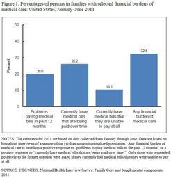 | Keywords: Medical debt in USA. National Health Interview Survey.gif en Percentages of persons in families with selected financial burdens of medical care United States January “June 2011 From article published in March 2012 http //www cdc gov/nchs/data/nhis/earlyrelease/financial_burden_of_medical_care_032012 pdf Financial Burden of Medical Care Early Release of Estimates From the National Health Interview Survey January “June 2011 By Robin A Cohen Ph D ; Renee M Gindi Ph D ; and Whitney K Kirzinger M P H Division of Health Interview Statistics National Center for Health Statistics See National Health Interview Survey Centers for Disease Control and Prevention a federal agency under the U S Department of Health and Human Services PD-USGov Uploaded with UploadWizard Private medical debt statistics for the United States |