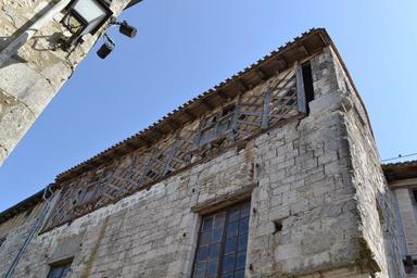 Keywords: medieval house medieval street stone wall home to the heads issigeac wooden sculpture architecture dordogne