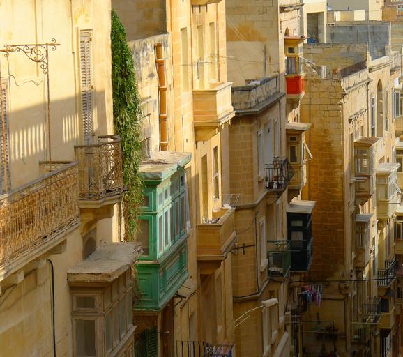 Keywords: mediterranean valletta alley homes window balconies malta gozo sea holiday