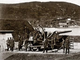 | Keywords: Medjidi Tabia.jpg de Türkische 28cm Kanone im Abwehrsystem der Festung Medjidi Tabia in der Nähe von Silistra bg 11 дюймово около 28 см ту ско о ъдие от отб анителната система на к епостта еджиди табия к ай Силист а 1877 г http //www lostbulgaria com/ p 369 unknown ottoman 1877 PD-Ottoman Medzhidi Tabia |