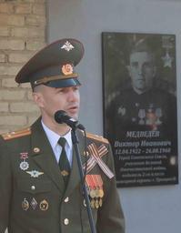 | Keywords: Medvedev VI.jpg en Opening of a memorial Board to the veteran of the great Patriotic war Hero of the Soviet Union V I Medvedev in the city of Troitsk Chelyabinsk region on the building of the fire station No 31 ru Отк ытие мемо иальной доски вете ану Великой Отечественной войны Ге ою Советского Союза В И едведеву в го оде Т оицке Челябинская область на здании пожа ной части 31 Личное пользование ихаил Вале ьевич Растопчин 2014-05-08 емо иальные доски Челябинской области Cc-zero | ||||