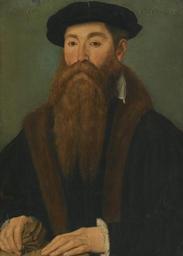 | Keywords: Meester van de 1540s - Portret van een bebaarde Heer met een paar handschoenen.jpg Artwork creator master of the 1540s ~ 1541 1551 oil oak cm 65 5 47 5 object history Art market London 1925;<br/>Anonymous sale New York Sotheby's 20 January 1983 lot 59 when acquired by the late owner credit line inscribed upper left A- 1520 see note and upper right AETATIS SVAE/ 29 Max Jakob Friedländer Max J Friedländer reproduces the work in his 1975 revised edition with a photograph taken in 1925 showing the picture before the addition of '20' as the last two digits of the date so these were added subsequently perhaps to facilitate an attribution to an earlier portraitist such as Holbein or van Cleve The upper right hand inscription is shown fuller giving the sitter's age as AETATIS SVAE/ 29 The 29 presumably a later addition has been removed in a subsequent cleaning accession number http //www sothebys com/de/auctions/ecatalogue/2011/old-master-british-paintings-day-sale-l11034/lot 135 html Sotheby's London 07 Juli 2011 lot 135 PD-old-100 DEFAULTSORT Master of the 1540s Portrait male Sotheby's 2011 Master of the 1540s 16th-century oil on panel paintings 16th-century portrait paintings of men Male fur clothing in art Marten clothing in art Images from Sotheby's Fur fashion in 1546 |