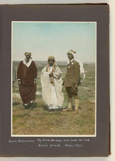 Keywords: Meetings of British, Arab, and Bedouin officials in Amman, Jordan, April 1921 - File 03.tif en Photographs show meetings between Arab Bedouin and British officials around April 17-27 1921 at Amir Abdullah ibn Hussein's camp at Amman Jordan During these meetings British High Commissioner Herbert Samuel proclaimed Amir Abdullah as the ruler of Transjordan under British protection Among the persons depicted are Amir Abdullah John D Whiting possibly Sheik Sultan of the Belka Sultan ibn 'Ali id Diab ul 'Adwan Amir Shaker bin Zeid future Regent of Transjordan Bedouin chief Auda Abu Tayi Sheik Majid Pasha el Adwan Herbert Samuel British civil administrator Wyndham Deedes British diplomat Albert Abramson T E Lawrence Lawrence of Arabia and possibly Iraq civil administrator Gertrude Bell Also shown are horse racing an airplane landing at Abdullah's camp Circassian leaders Abudullah's bodyguard on camels and Herbert Samuel reading his proclamation of Abdullah as leader of Transjordan Reproduction Number LC-DIG-ppmsca-15304 digital files of original photos LC-DIG-ppmsca-15305 digital files of album pages Rights Advisory No known restrictions on publication Access Advisory For reference access please use the digital images in the online catalog to preserve the fragile original items Notes Photographs were created by the photographers of the American Colony Photo Department located in Jerusalem Founded in the late 1890s by Elijah Meyers the photo agency was headed during its heyday ca 1903-1933 by Lewis Larsson whose staff photographers included Erik Lind Lars Lind Furman Baldwin and G Eric Matson It transitioned into the Matson Photo Service around 1940 with photography by Matson Hanna Safieh Joseph H Giries and others John D Whiting contributed periodically to the work of both agencies The images in this album were probably taken by Lewis Larsson and/or Eric Matson For more information see http //hdl loc gov/loc pnp/pp matpc and http //www loc gov/rr/print/coll/629_whiting html Some caption information for these photographs based on information from matching negatives in the G Eric and Edith Matson Photograph Collection LC-M32-1942 LC-M32-1952 LC-M32-1951 LC-M32-1954 LC-M32-1956 M32-1957 and LC-M32-50280-x Album unpaginated album page numbers supplied by Library staff Pages 1-2 and verso of each page are blank One unattached photograph was found with the album and is stored with it Photograph is a portrait of a Jordanian man in traditional dress Blind stamp Hagop Berberian Amman Stamped on verso Copyright reserved By appointment to H M the King photographers Hagop Berberian Son More information about the events and people depicted in the album are available in the John D Whiting Supplementary Archive Box 1 LOT title devised by Library staff John D Whiting's diaries correspondence and other materials are located in the Library of Congress Manuscript Division Papers of John D Whiting Forms part of Visual materials from the papers of John D Whiting Library of Congress Transfer; Manuscript Division; 2006; DLC/PP-2006 051 29 Subjects Samuel Herbert Louis Samuel --Viscount --1870-1963 Lawrence T E -- Thomas Edward --1888-1935 Abdullah --King of Jordan --1882-1951 Deedes Wyndham Henry --Sir --1883-1956 Shākir ibn Zayd --Prince son of Zayd ibn Fawwāz Amir of Ṭāʾif --1885-1934 Bell Gertrude Lowthian --1868-1926 Jordan--History--1919-1946 American Colony Jerusalem --People--1920-1930 British--Jordan--Amman--1920-1930 Arabs--Jordan--Amman--1920-1930 Bedouins--Jordan--Amman--1920-1930 Circassians--Jordan--Amman--1920-1930 Tribal chiefs--Jordan--Amman--1920-1930 Meetings--Jordan--Amman--1920-1930 Camps--Jordan--Amman--1920-1930 Government officials--Jordan--Amman--1920-1930 Biplanes--Jordan--Amman--1920-1930 Proclamations--Jordan--Amman--1920-1930 April 17-27 1921 http //www loc gov/pictures/item/mpc2010001545/PP/resource/ Whiting John D John David 1882-1951 photographer Larsson Lewis photographer Matson G Eric Gästgifvar Eric 1888-1977 photographer other versions Wikimedia Levant - GLAM PD-Jordan 1921 Herbert Samuel and Amir Abdullah meetings