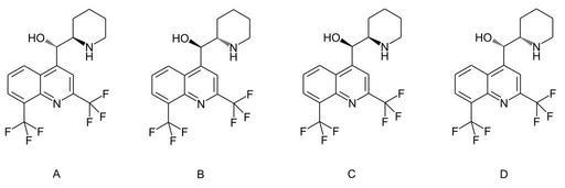 Keywords: Mefloquine stereochemistry.svg en stereochemistry of mefloquine de Stereochemie vom Mefloquin own Steffen 962 2014-02-23 PD-chem Mefloquine Cc-zero