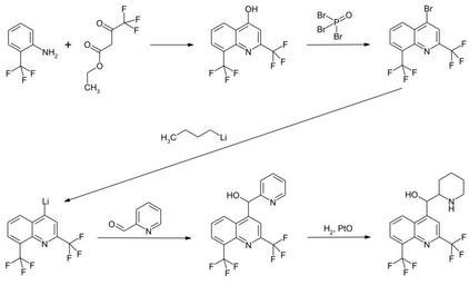 Keywords: Mefloquine synthesis 01.svg en Synthesis of Mefloquine de Synthese von Mefloquin own Steffen 962 2014-02-24 DOS 2806909 Roche 17 02 1978 Mefloquine Cc-zero