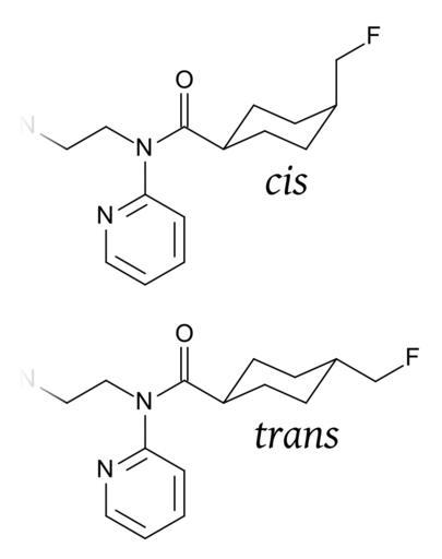 Keywords: Mefway cis-trans comparison.svg mefway own Anypodetos 2011-08-06 BKchem 001 -check N N-disubstituted primary amides Pyridines Geometric isomerism Cc-zero