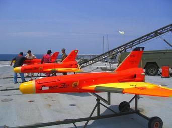 | Keywords: Meggitt Banshees.jpg A team of Royal Brunei Armed Forces military and civilian contractors prepare Banshee unmanned drones for launch from the U S Navy's dock landing ship USS Fort McHenry LSD 43 The drones are used as targets while conducting underway gunnery practice during the Brunei phase of exercise Cooperation Afloat Readiness and Training CARAT CARAT is a regularly scheduled series of bilateral military training exercises with several Southeast Asia nations designed to enhance the interoperability of the respective sea services Location South China Sea http //www navy mil/view_image asp id 15449 2004-06-23 U S Navy photo by Journalist Seaman David J Ham PD-USGov-Military-Navy LicenseReview http //www navy mil/view_image asp id 15449 High Contrast 2013-02-18 Meggitt Banshee Red aircraft Cooperation Afloat Readiness and Training 2004 Red and yellow aircraft |