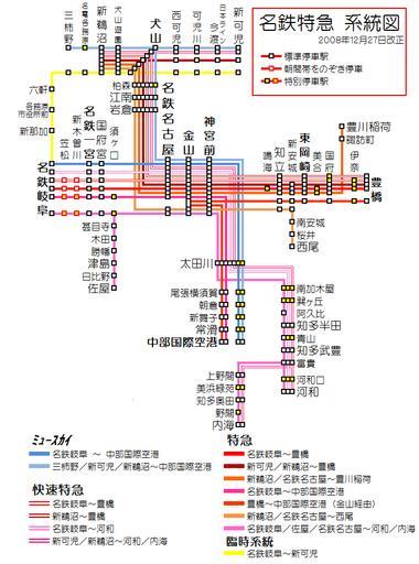 | Keywords: Meitetsu Limited Express Network.png en Meitetsu Limited Express Network Japanese Revision of December 27 2008 ja 名鉄特 運転系統図 日 語 2008年12 27日改正 own ButuCC 2009-10-01 300px English PNG Ver Revision of December 27 2008 300px Japanese SVG Ver Revision of December 17 2011 Railway maps of Nagoya Railroad |