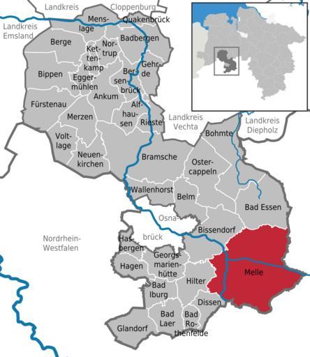 | Keywords: Melle in OS.svg DeLocMaps Melle Landkreis Osnabrück District of Osnabrück Osnabrück district L'arrondissement d'Osnabrück Arrondissement d'Osnabrück Niedersachsen Lower Saxony Basse-Saxe TUBS/Translation own Adobe Illustrator based on File Lower Saxony location map svg NordNordWest http //www landkreis-osnabrueck de/pics/medien/1_1221811658/Zwei_Wege_Strategie pdf Landkreis Osnabrück Die 2-Wege-Strategie im Landkreis Osnabrück File Locator map OS in Lower Saxony svg TUBS 2009-06-20 TUBS TUBS GFDL cc-by-3 0 2 5 2 0 1 0 cc-by-sa-3 0 2 5 2 0 1 0 TUBS/Credits Locator maps of municipalities in Landkreis Osnabrück Melle Lower Saxony |