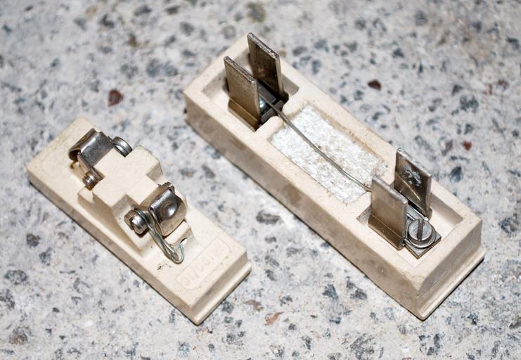 Keywords: MEM 1957 fuseholders.jpg en 30A and 15A rewirable fuse holders manufactured c 1957 by MEM as used in their contemporary consumer units Britische Sicherungshalter von 1957 aus Porzellan mit austauschbaren Sicherungsdraht für 30 und 15 Ampere Fabrikat MEM Own Anihl 2008-10-14 Rewirable fuses Fuse holders |