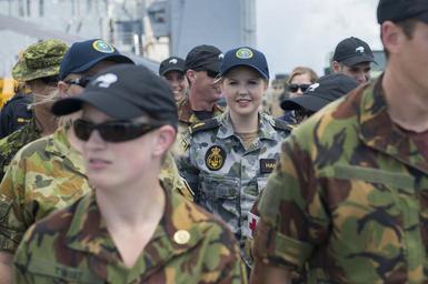 | Keywords: Members of the Pacific Partnership 2013 mission stand on the flight deck of the amphibious dock landing ship USS Pearl Harbor (LSD 52) before receiving their certificates of participation.jpg en PACIFIC OCEAN July 28 2013 Members of the Pacific Partnership 2013 mission stand on the flight deck of the amphibious dock landing ship USS Pearl Harbor LSD 52 before receiving their certificates of participation from U S Navy Capt Wallace Lovely mission commander Working at the invitation of each host nation U S Navy forces are joined by non-governmental organizations NGOs and regional partners that include Australia Canada Colombia France Japan Malaysia Singapore South Korea and New Zealand to improve maritime security conduct humanitarian assistance and strengthen disaster-response preparedness 2013-07-28 01 05 22 http //www flickr com/photos/compacflt/9385207623/ U S Navy Photo by Mass Communication Specialist 3rd Class Samantha J Webb PD-USGov Uploaded with UploadWizard Pacific Partnership 2013 Military people of New Zealand Women in the Australian military USS Pearl Harbor LSD-52 |