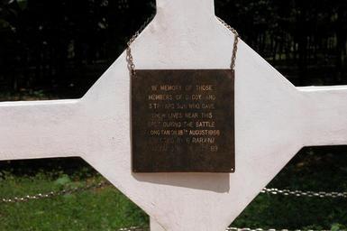 Keywords: Memorial plaque on the Long Tan cross.jpg en The memorial plague hanging temporarily on the Long Tan cross Own Tacintop 2005-11 Long Tan Cross Plaques in Vietnam