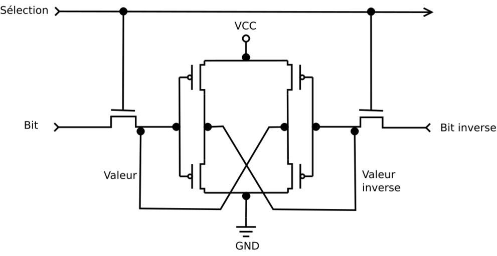 MAKE A MEME View Large Image Memory cell.svg en Schematic of a standard SRAM cell fr Schéma d'une cellule SRAM standard own Neonderthalis 2010-12-12 Cc-zero Computer science Computer memory