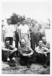 | Keywords: lumbermen massanoga sawyer stoll sawyerstoll workers men don hawley donhawley wes hawley weshawley dave hawley davehawley ray armstrong rayarmstrong roy hawley royhawley hugh tompkins hughtompkins jack donnelly jackdonnelly clayton cournoyer claytoncournoyer blackandwhite monochrome black and white Photo contributed by Don Hawley. Back row (L-R): Wes Hawley, Don Hawley, Dave Hawley, ?, Ray Armstrong, Roy Hawley. Front ro (L-R): Hugh Tompkins, Jack Donnelly, ?, Clayton Cournoyer. Date unknown. Photo contributed by Don Hawley. Back row (L-R): Wes Hawley, Don Hawley, Dave Hawley, ?, Ray Armstrong, Roy Hawley. Front ro (L-R): Hugh Tompkins, Jack Donnelly, ?, Clayton Cournoyer. Date unknown. |