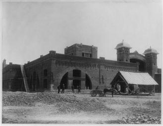 | View Original: | Men,_horse-drawn_wagon_&_pile_of_crushed_rock_before_walled_city._ca._1890s.jpg (640x498) | |||