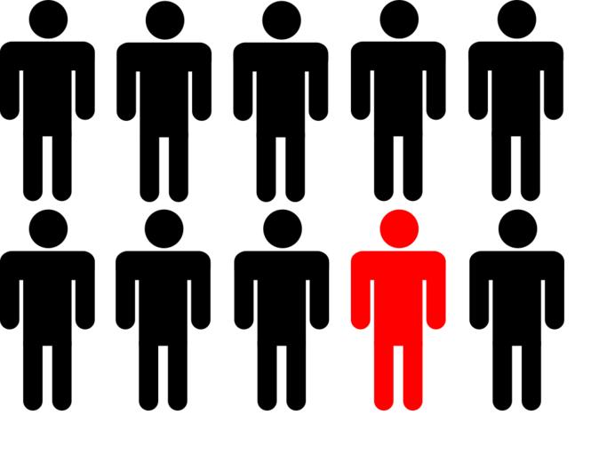 Keywords: men individual group community black red odd man out figures singled out maverick non-conformity stand out people teamwork ranks hierarchy leader unique rebel different