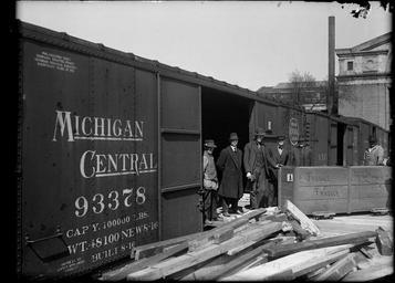 | Keywords: the field museum columbian move blackandwhite monochrome black and white Men, loading platform, box marked Fragile. Michigan Central Railroad car #93378. Either west or east side of building, smoke stack visible at left. Museum move series. Field Columbian Museum move to new FM building. 1920. Original size and material: 5x7 inch glass negative Digital Identifier: CSGN40533 Part of the Illinois Urban Landscapes Project: www.fieldmuseum.org/urbanlandscapes/ Men, loading platform, box marked Fragile. Michigan Central Railroad car #93378. Either west or east side of building, smoke stack visible at left. Museum move series. Field Columbian Museum move to new FM building. 1920. Original size and material: 5x7 inch glass negative Digital Identifier: CSGN40533 Part of the Illinois Urban Landscapes Project: www.fieldmuseum.org/urbanlandscapes/ |