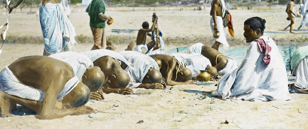 | Keywords: Men praying, India, ca. 1920 (IMP-CSCNWW33-OS16-76).jpg en <br> Men praying India ca 1920 Tinted lantern slide showing a group of Hindu men bowing to pray Six men bow in line in front of a man who sits before them A lota a copper or brass vessel often used in ritual purification can be seen before one of the men who bends to pray The men pray on the sandy bank of a river This slide comes from a collection created by missionaries from Regions Beyond Missionary Union an interdenominational Protestant evangelical mission working in northeast India Bihar and Orissa and Nepal Photographer Unknown Filename IMP-CSCNWW33-OS16-76 tif Coverage date 1915/1925 Subject unesco Religious activities Part of collection International Mission Photography Archive ca 1860-ca 1960 Part of subcollection Photographs from the Centre for the Study of World Christianity University of Edinburgh U K ca 1900-ca 1940s Repository name Centre for the Study of World Christianity Archival file Volume4/IMP-CSCNWW33-OS16-76 tif Repository address The University of Edinburgh School of Divinity New College Mound Place Edinburgh EH1 2LX United Kingdom Geographic subject country India Format aacr2 lantern slides 8 2 x 8 2cm Geographic subject continent Asia Rights Contact the repository for details Part of series Regions Beyond Missionary Union India uncaptioned slides CSCNWW33/OS16 Repository email divinity-CSWC ed ac uk Date created 1915/1925 Publisher of the digital version University of Southern California Libraries Subject aat genre group portraits Format aat lantern slides; photographs Geographic subject state Bihar Access conditions http //www ed ac uk/schools-departments/divinity/research/centres/world-christianity/collections-resources Geographic subject rivers File CSCNWW33/OS16/76 Subject lcsh Men; Hinduism; Worship; Prayer 1915/1925 date created author http //digitallibrary usc edu/cdm/ref/collection/p15799coll123/id/78371 PD-old-70-1923 Magic lantern images Images from USC Digital Library uploaded by Fæ International Mission Photography Archive ca 1860-ca 1960 |