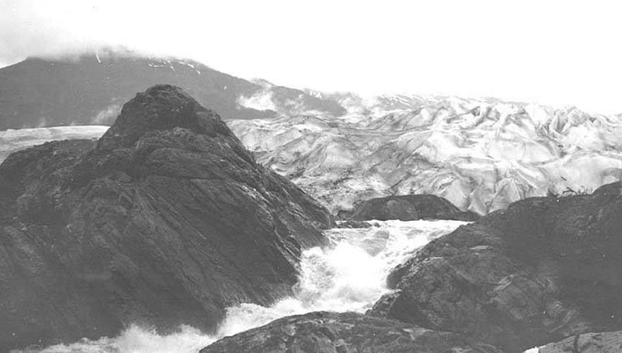 Keywords: Mendenhall Glacier and River, ca 1912 (THWAITES 372).jpeg check categories 27 October 2016 2 Photograph Creator John E Thwaites PH Coll 247 854<br/>Mendenhall Glacier is located 13 miles from downtown Juneau In the mid-1700s Mendenhall Glacier reached its point of maximum advance and its terminus rested almost 2 5 miles down valley from its present position Mendenhall Glacier started retreating in the mid-1700s because its annual rate of melt began to exceed its annual total accumulation The icefield's snowfall perpetually creates new glacial ice for Mendenhall Glacier and this ice takes 200-250 years to travel from the Juneau Icefield to Mendenhall Lake Water depth at the glacier's terminus is 220 feet Thomas Corwin Mendenhall 1841-1924 served as Superintendent of the U S Coast and Geodetic Survey from 1889 to 1894 A noted scientist Mendenhall also served on the Alaska Boundary Commission that was responsible for surveying the international boundary between Canada and Alaska In 1892 this glacier was renamed to honor Mendenhall Naturalist John Muir first named the glacier Auke Glacier in 1879 after the Aak'w Kwaan of the Tlingit Indians Subjects LCTGM Mendenhall Glacier Alaska ; Glaciers--Alaska; Mendenhall River Alaska ; Rivers--Alaska depicted place Mendenhall Glacier ca 1912 Institution University of Washington UWASH-THWAITES-source accession number thwaites 372 PD-old-auto-1923 1940 Information field Order Number THW371 Images from the John E Thwaites Photographs of Alaska Collection to check Mendenhall Glacier Rivers of Alaska |