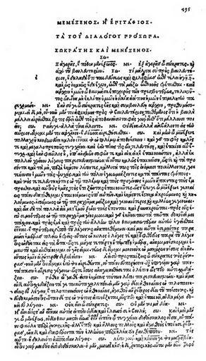 | Keywords: Menexenos beginning. Editio princeps.jpg en Menexenos beginning Editio princeps Venice 1513 de Menexenos Anfang Editio princeps Venedig 1513 1513 editio princeps Plato PD-old-100 Omnia Platonis Opera editio princeps Uploaded with UploadWizard |